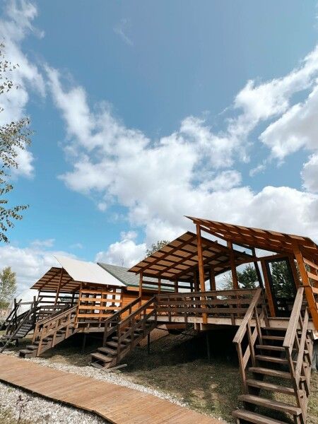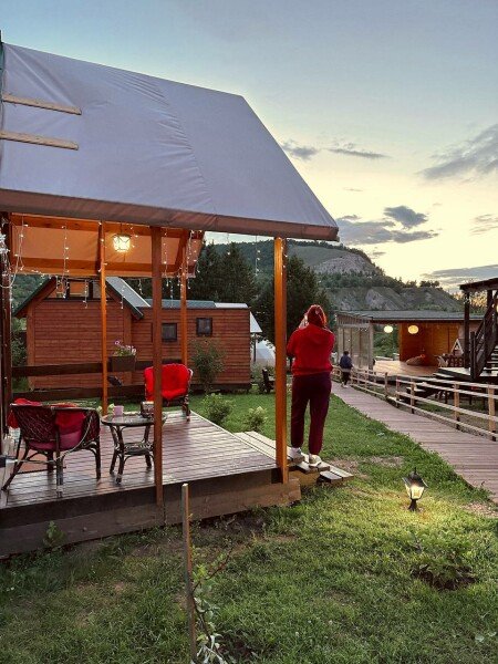 Читать полностьюГлэмпинг «Лисички-сестрички» предлагает прекрасные места для мероприятий и ретритов. Открытая терраса с живописным видом на горы и уютный тёплый зал, площадью восемьдесят метров, создадут незабываемую атмосферу. Также доступна небольшая беседка для шести–восьми человек, а для вашего удобства можно арендовать музыкальное оборудование, проектор и экран.