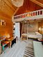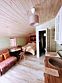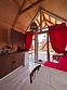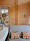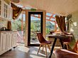 В домике: мини-кухня: чайник, плита, небольшой холодильник, посуда, откидной столик; двуспальная кровать; раскладное кресло-кровать; ортопедический матрас, дизайнерские детали интерьера, создающие уют.