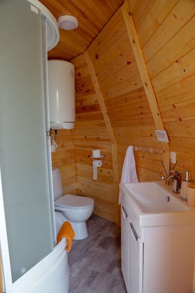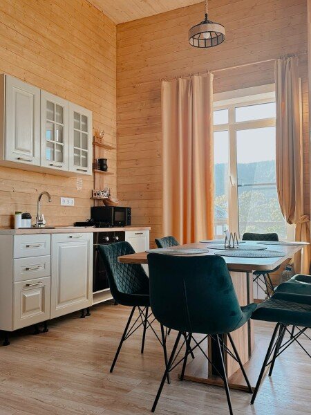 В домике: панорамные окна, вид на горы, панорамная терраса; две односпальные кровати (с возможностью трансформации в одну двуспальную кровать); раскладное кресло-кровать; кондиционер; санузел и душ, водонагреватель; шампунь, кондиционер для волос и гель для душа.