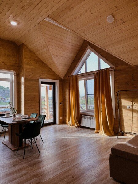 Семейный отдыхДостоинстваМы долго выбирали место для отпуска, и остановились на этом варианте, чему я очень рада) Максимальный комфорт, все продумано до мельчайших деталей. В домике есть даже овсянка для завтрака) Ну и конечно все удобства, Также очень понравилось что есть большой выбор развлечений: прокат велосипедов, лодочек, самокатов, экскурсии различные. Всем рекомендую приехать сюда и полюбоватся природой.