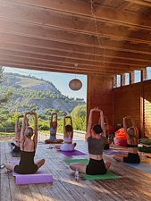Глэмпинг «Лисички-сестрички» предлагает прекрасные места для мероприятий и ретритов. Открытая терраса с живописным видом на горы и уютный тёплый зал, площадью восемьдесят метров, создадут незабываемую атмосферу. Также доступна небольшая беседка для шести–восьми человек, а для вашего удобства можно арендовать музыкальное оборудование, проектор и экран.