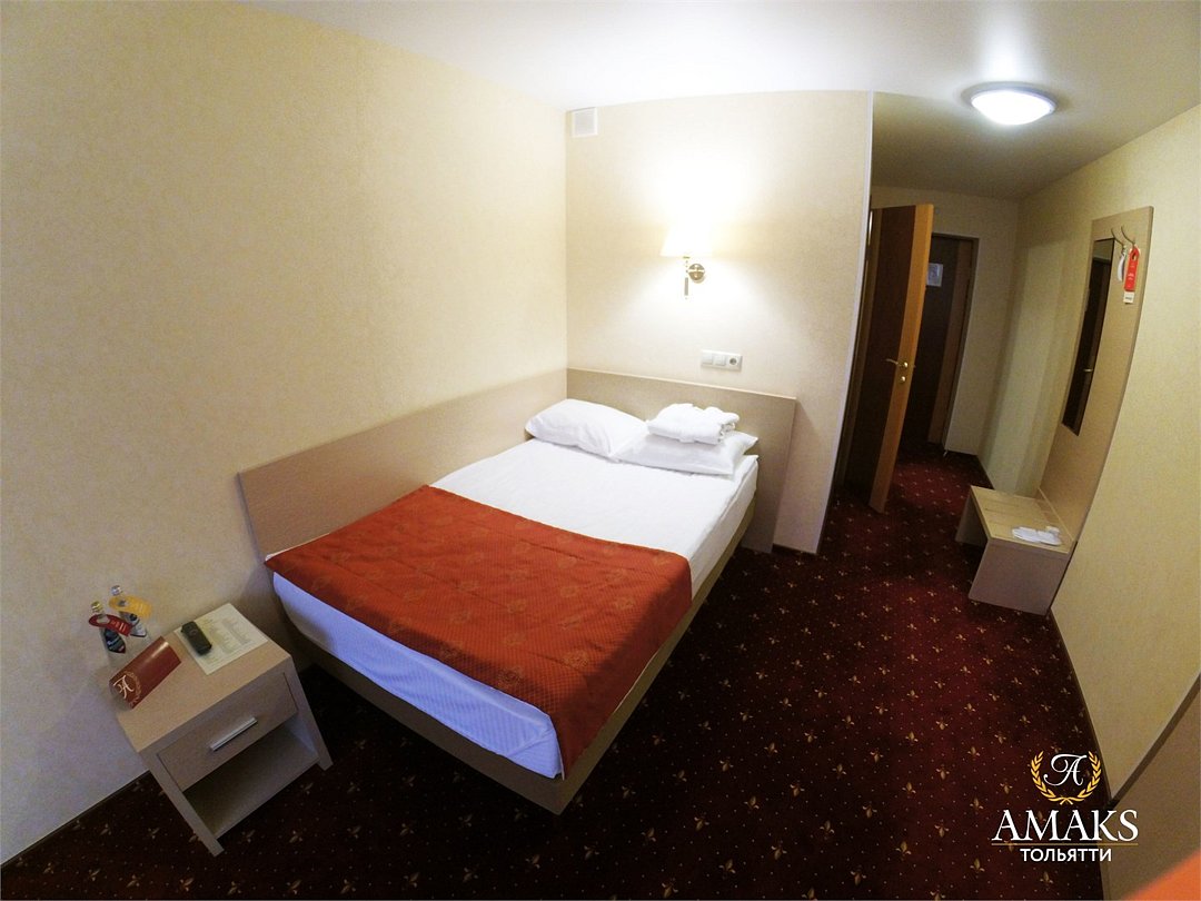 Комфортабельный однокомнатный номер в фирменном стиле сети AMAKS Hotels&Resorts, в номере: полутороспальная кровать, рабочая зона, в ванной комнате- душевая кабина.Услуги и удобства
