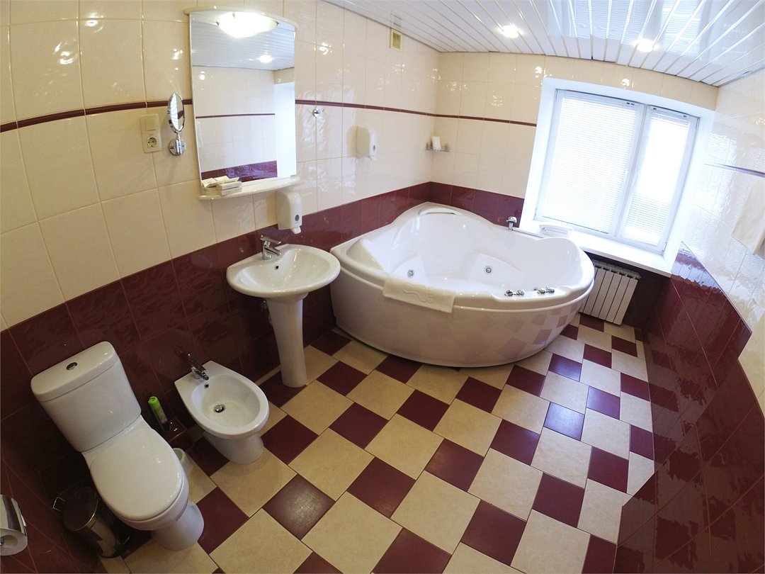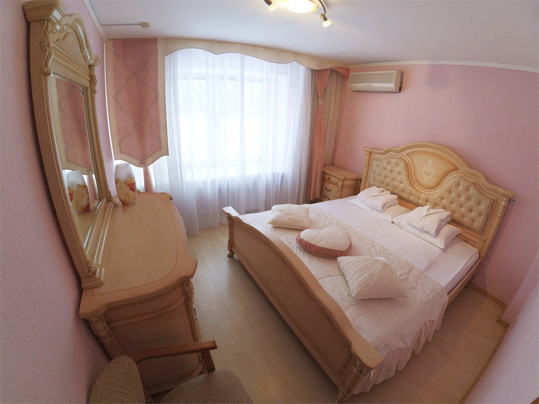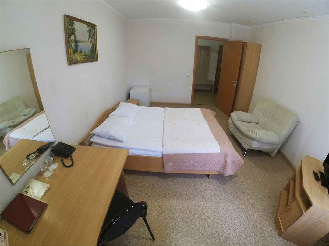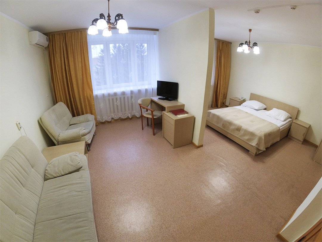 Комфортабельный номер, площадью 45 кв.м., двуспальная кровать, в некоторых номерах - зона с мягкой мебелью, телевизор, кондиционер, холодильник, телефон, сейф, Wi-Fi.Услуги и удобства