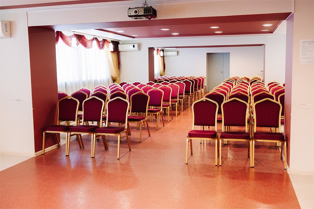 Конференц-зал площадью 100 кв.м., расположенный на 3 этаже гостиницы. Зал выполнен в классическом стиле, оснащен системой кондиционирования.