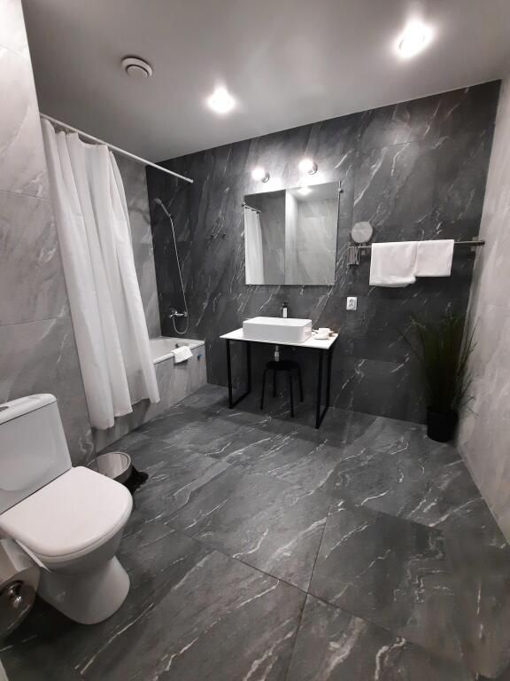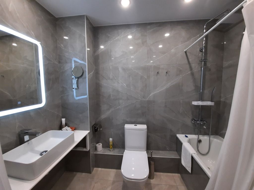 В номере вас будут ждать душ, халат и тапочки. Перечисленные услуги есть не во всех номерах.