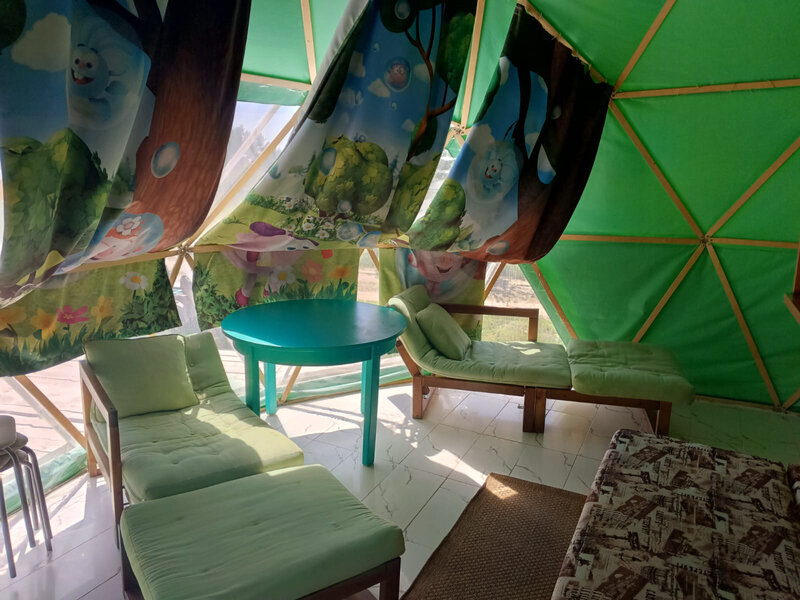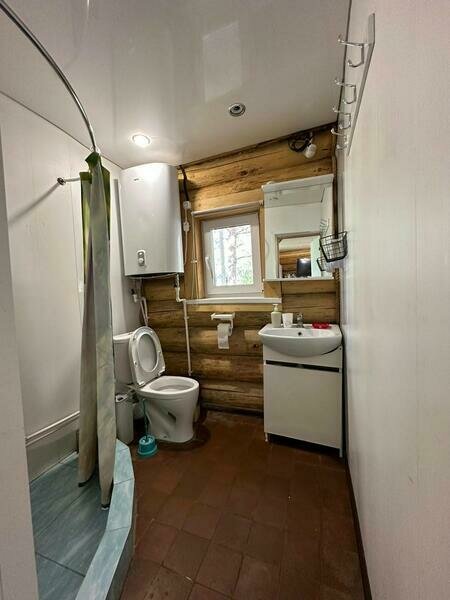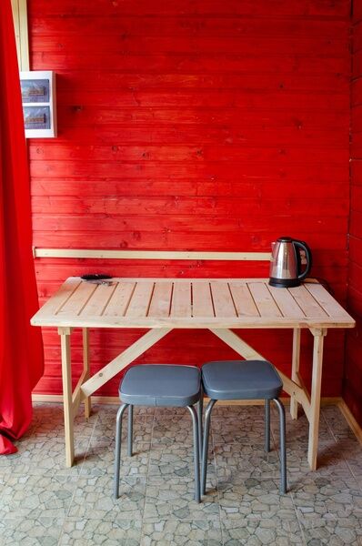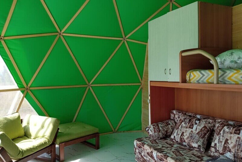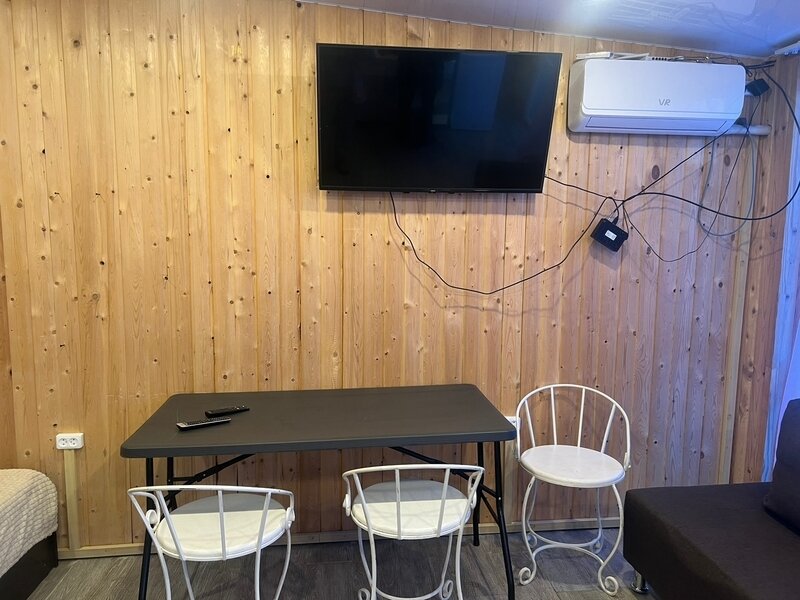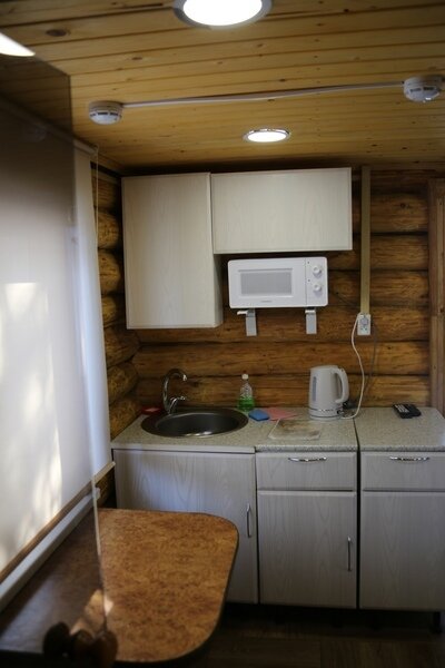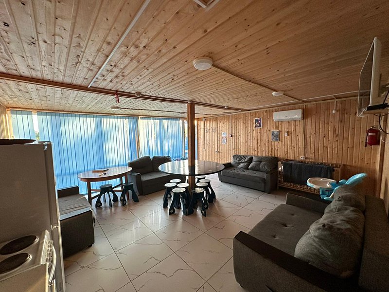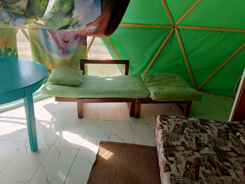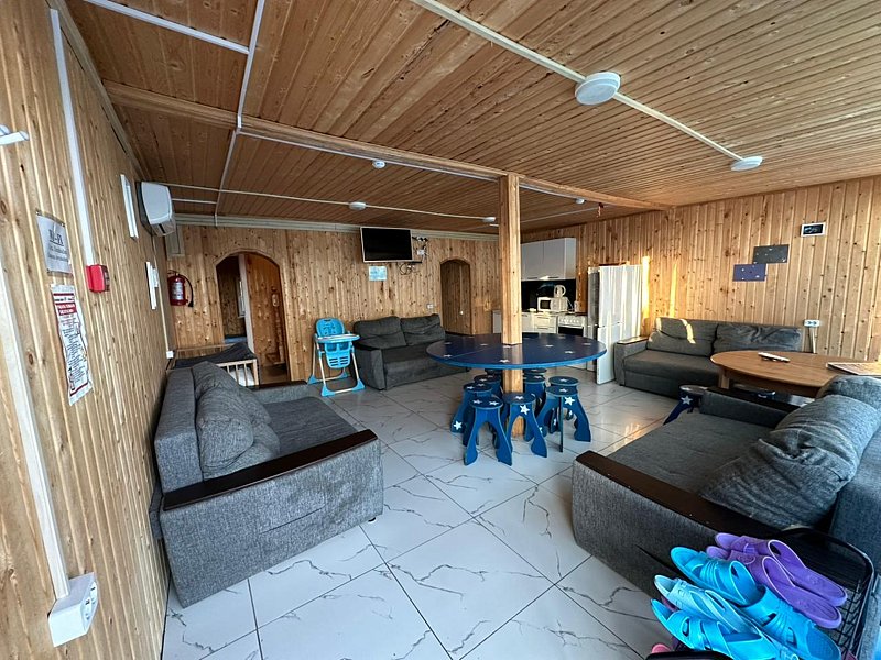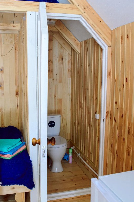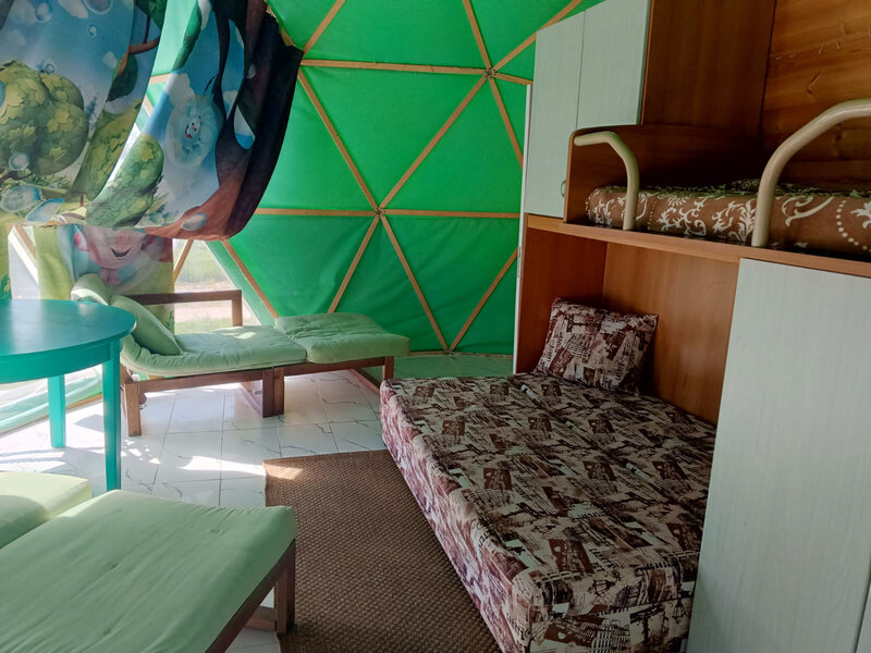 НедостаткиС комфортом беда, тесно, диван не раскладывался, на верхнем этаже очень низкий потолок, поэтому там очень душно. В ванной комнате вообще с трудом разворачиваешься, унитаз практически в душе стоит. Интересный внешне обеденный стол абсолютно не практичен, разместить на нем еду довольно непросто. Дорога до базы - жуткая грунтовка, в жару - пыль, в дождь слякоть. База, похоже знавала лучшие времена, территория довольно запущена, хотя задумка- потрясающая..