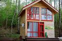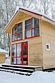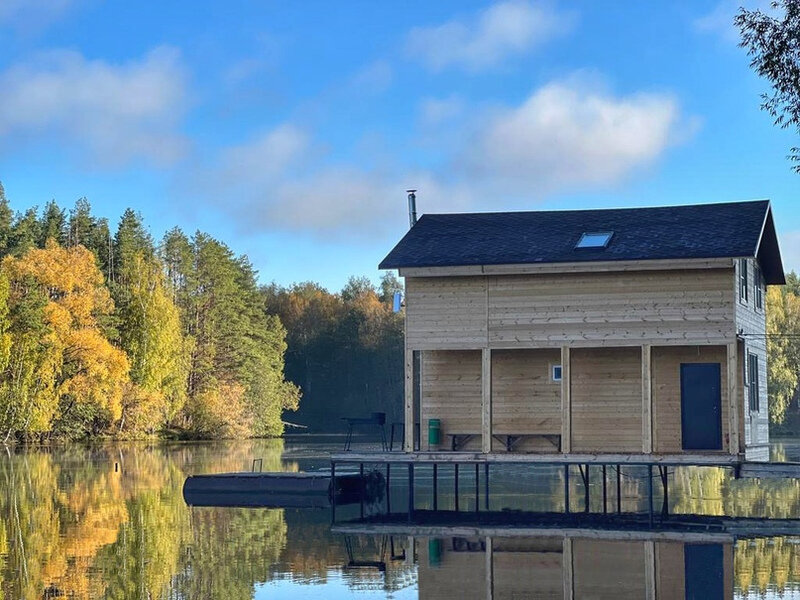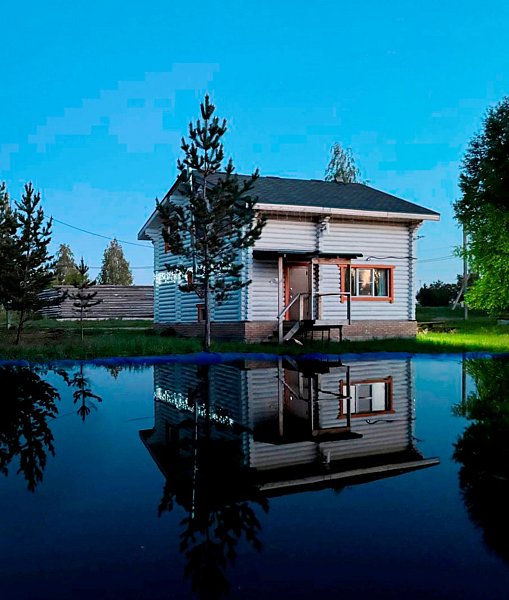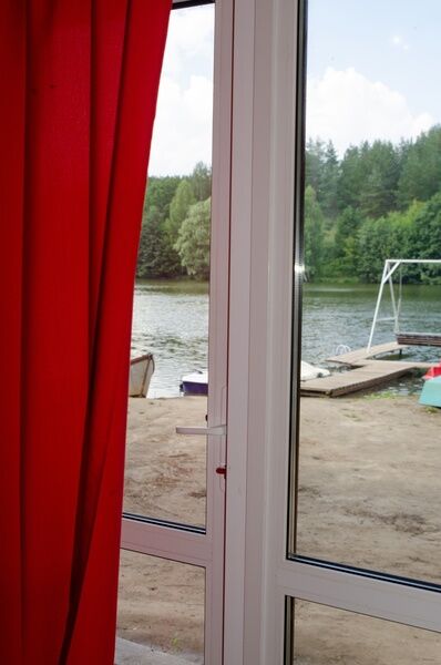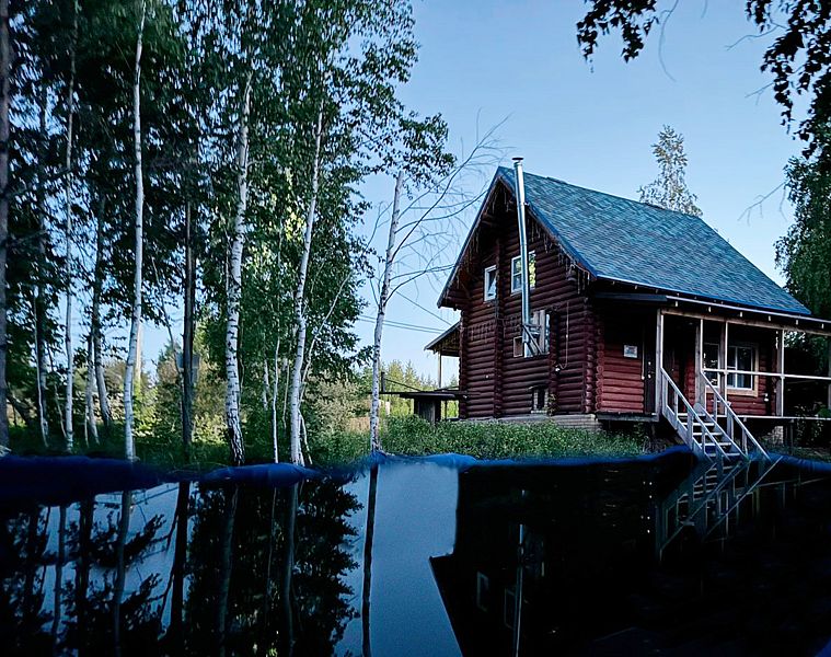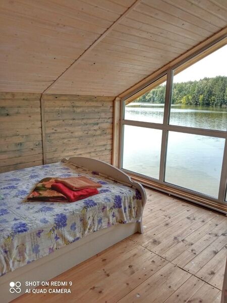 Веснушка бордовая (одноэтажная). Дом у воды. Рассчитан на 2 человек. Перед домом озеро и пляж песочный с мелководьем.