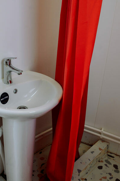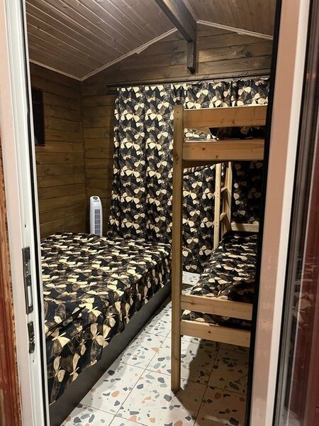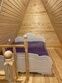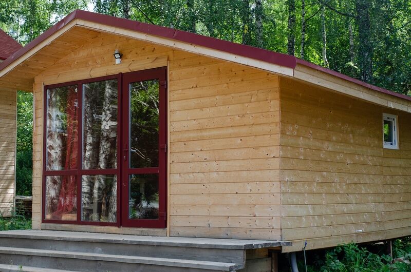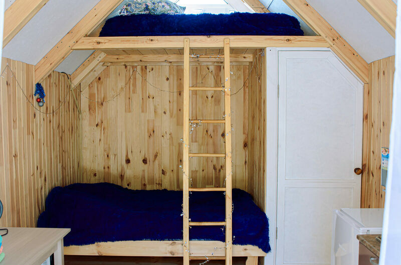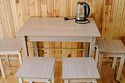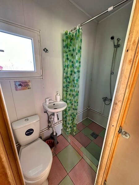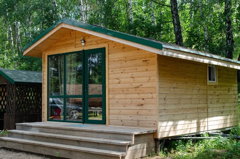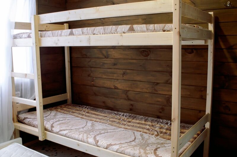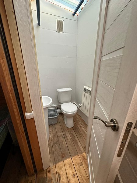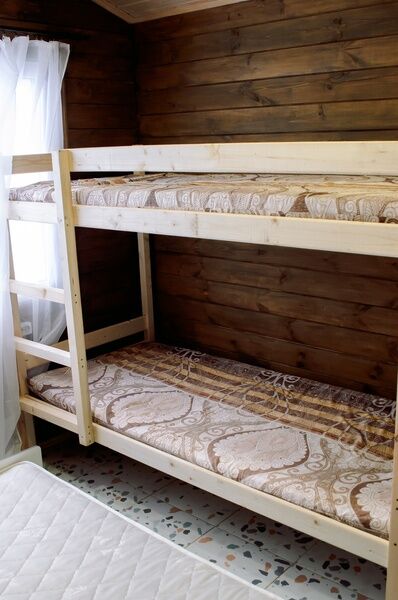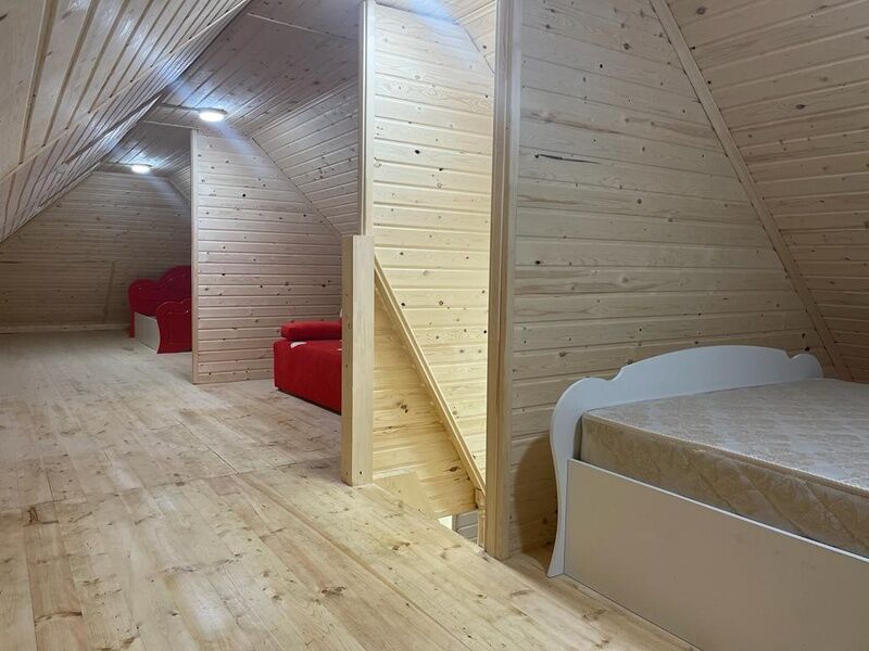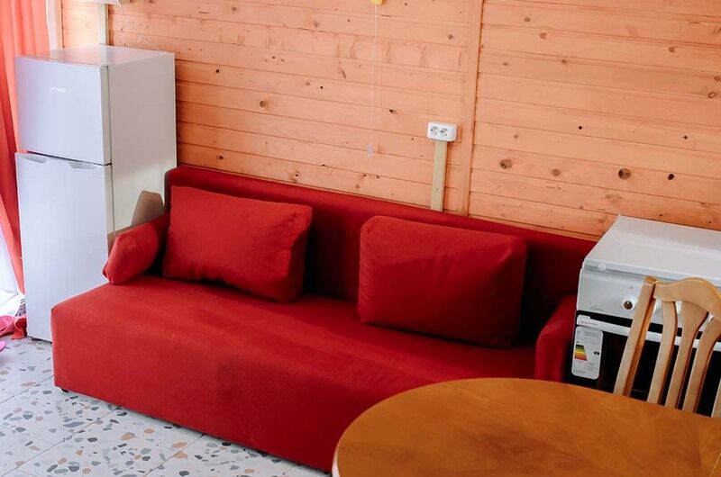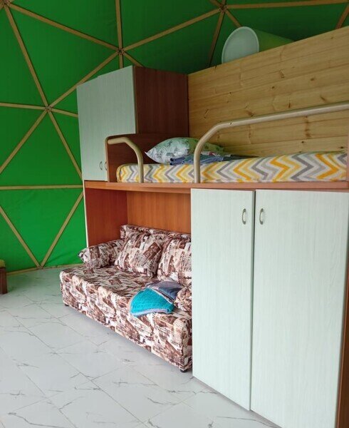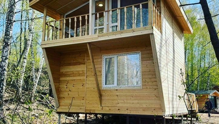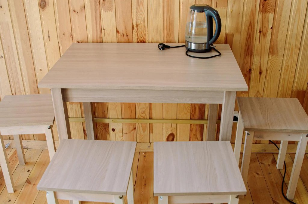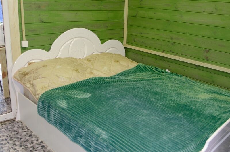 Каждый домик имеет санузел (унитаз и раковина), спальное место на двоих и 1 детское спальное (антресоль) место.