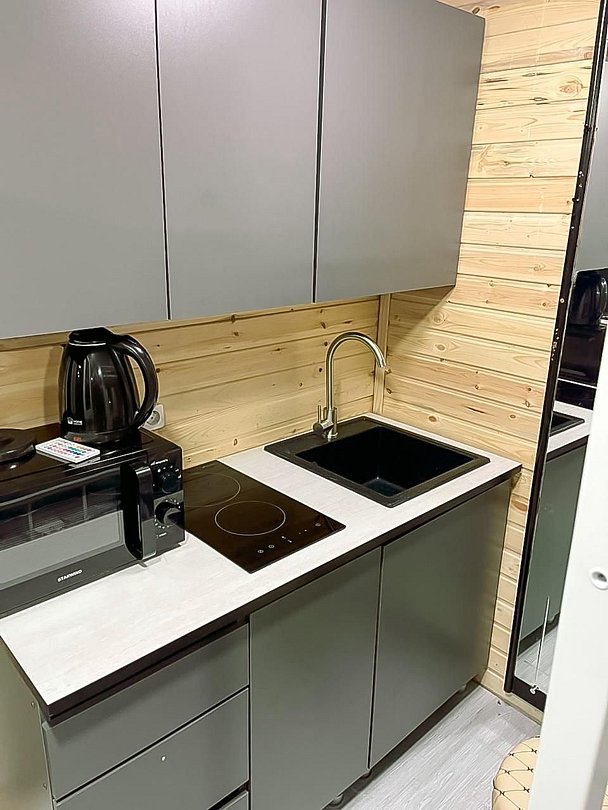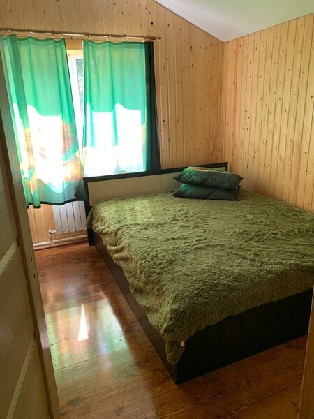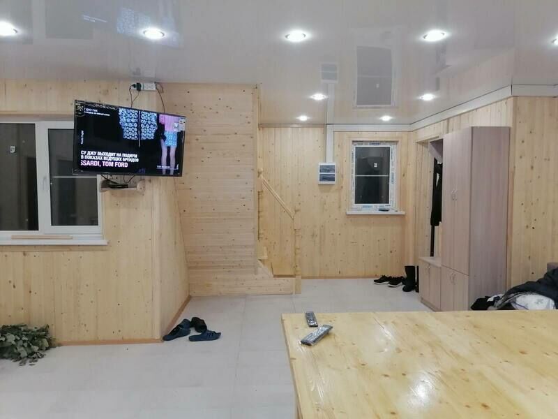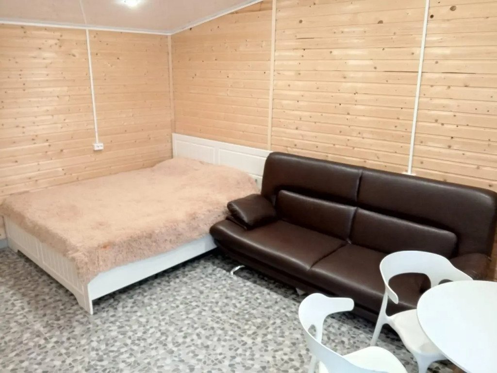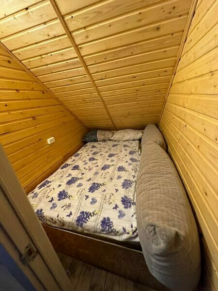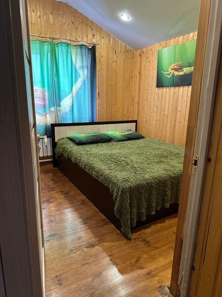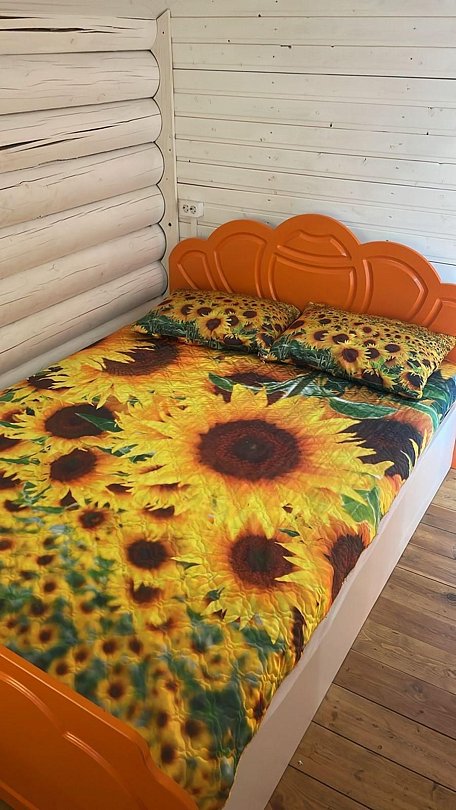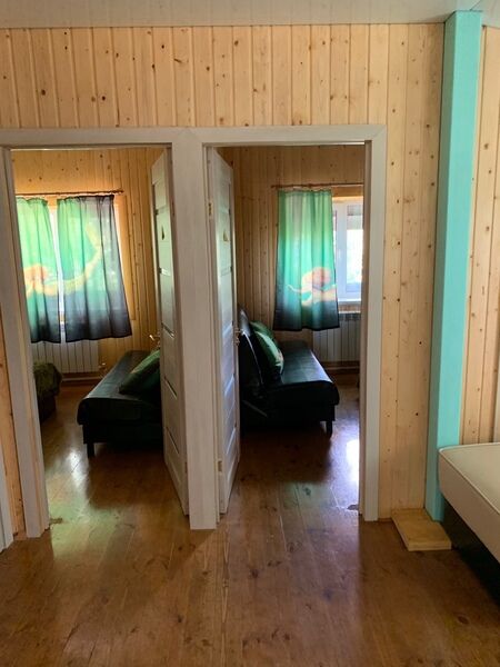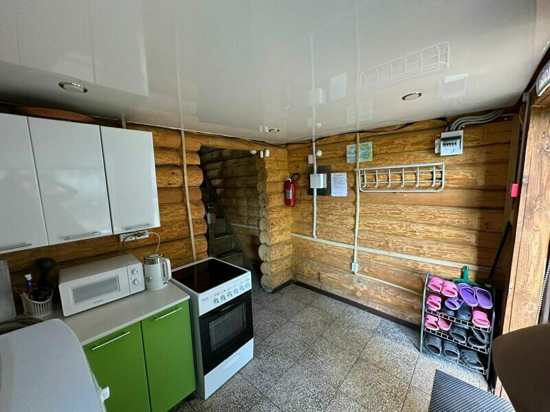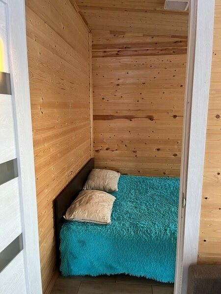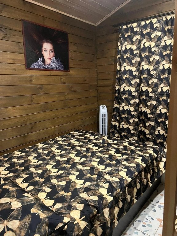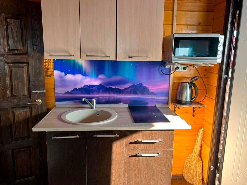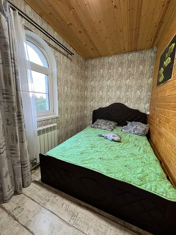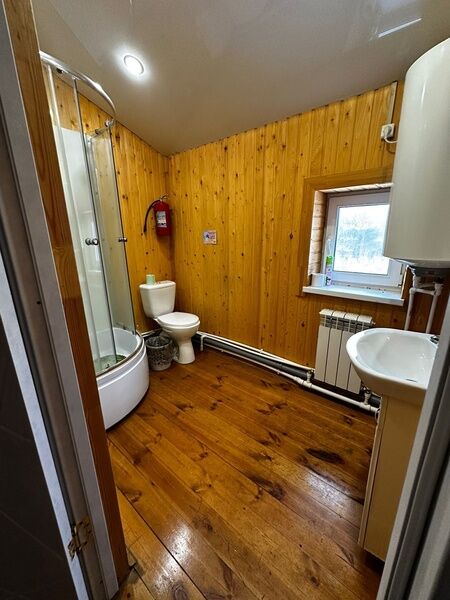В доме санузел, кухня, комната с двуспальным диванов и вместительная русская баня. Домик рассчитан на 2 спальных места. В нем есть: телевизор, холодильник, чайник, плита, мультиварка. Посуда, сковороды, кастрюли, белье, мангал.