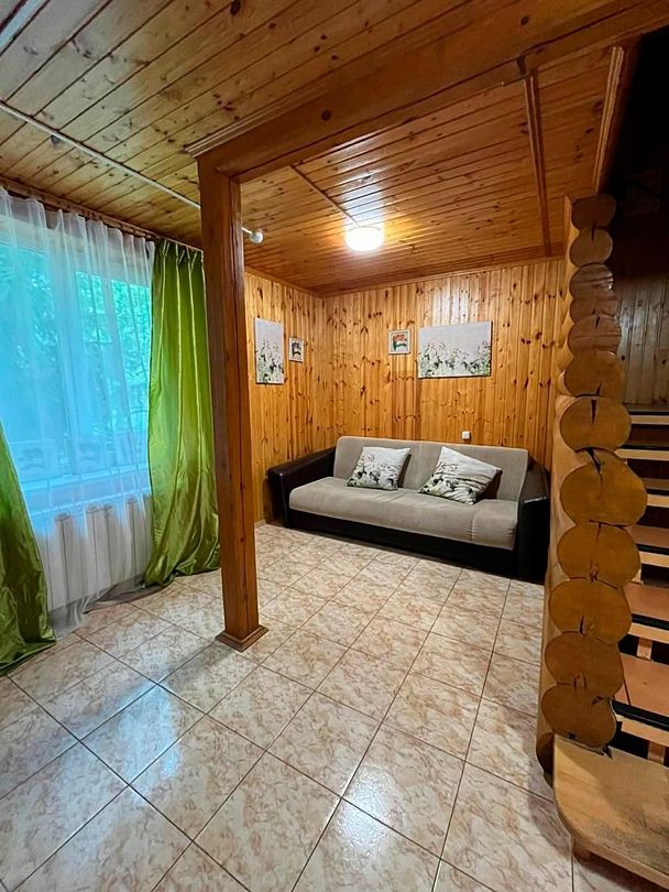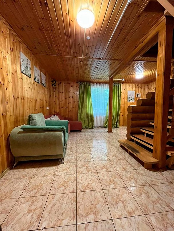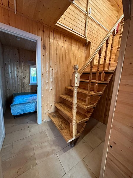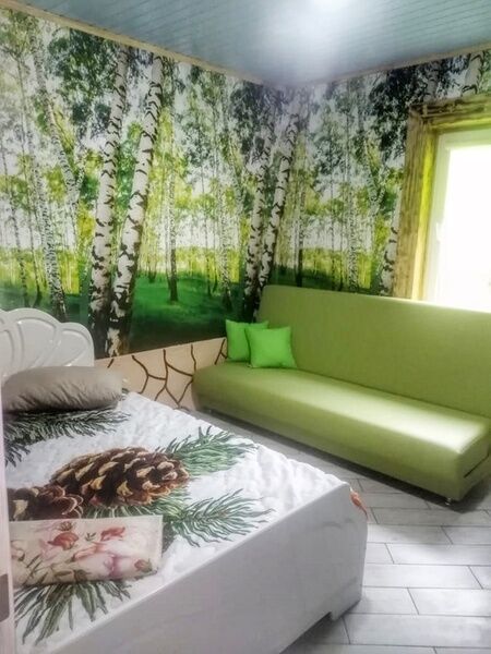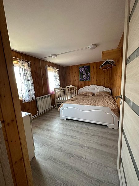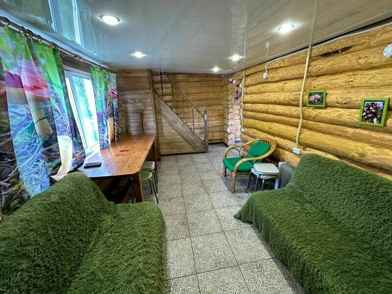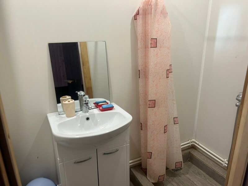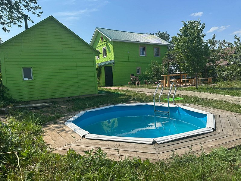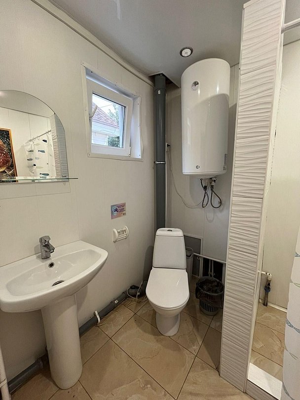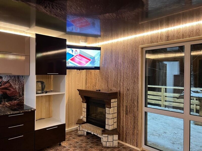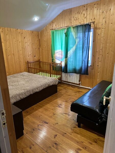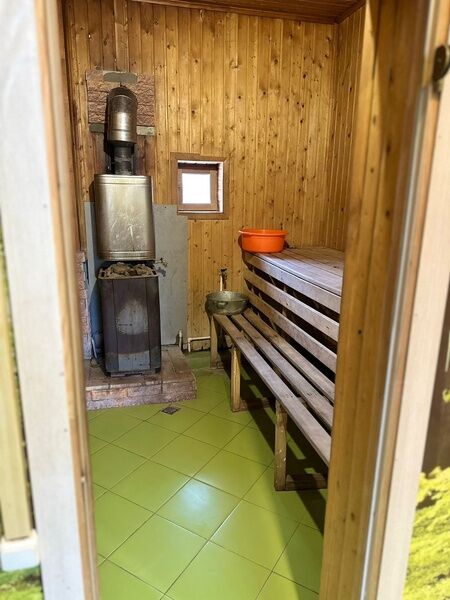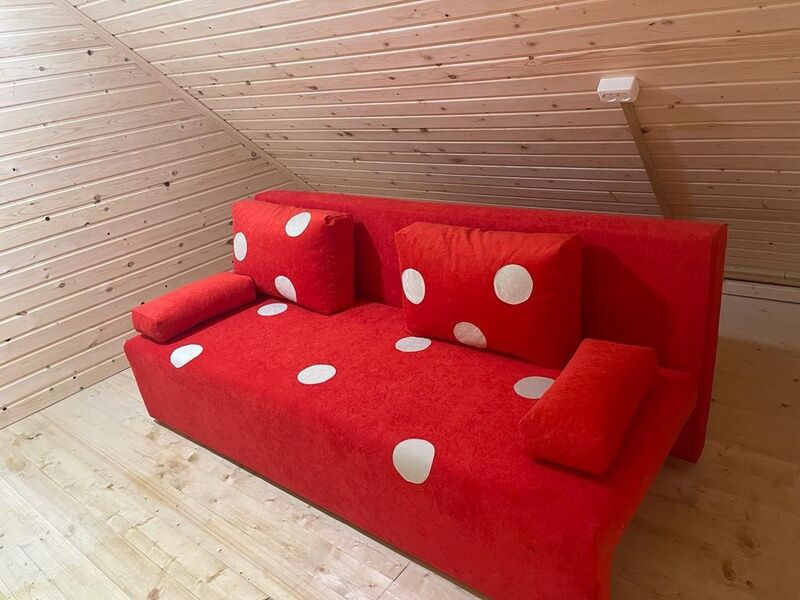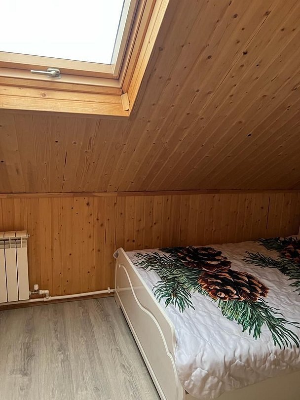 В доме санузел, кухня, комната с двуспальным диванов и вместительная русская баня. Домик рассчитан на 2 спальных места. В нем есть: телевизор, холодильник, чайник, плита, мультиварка. Посуда, сковороды, кастрюли, белье, мангал.