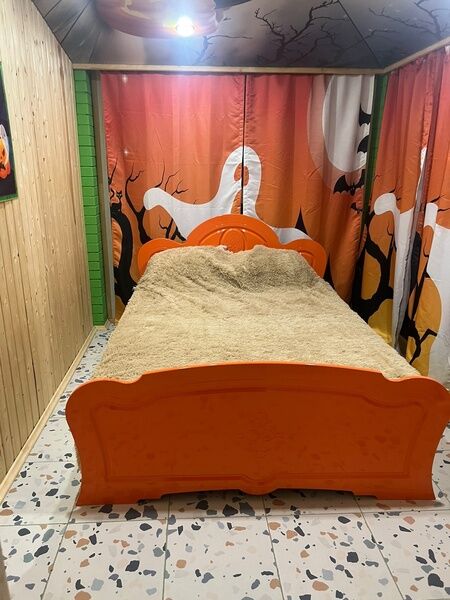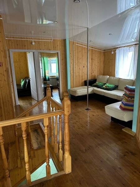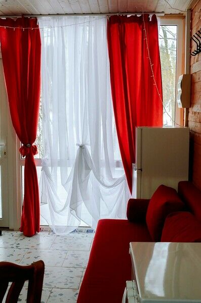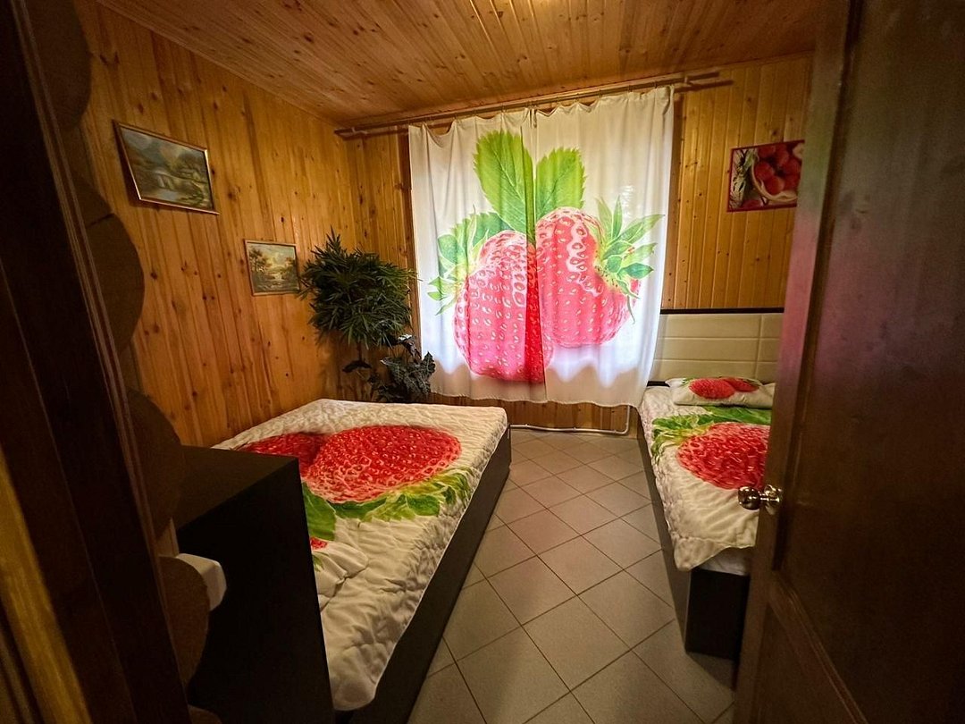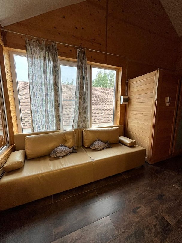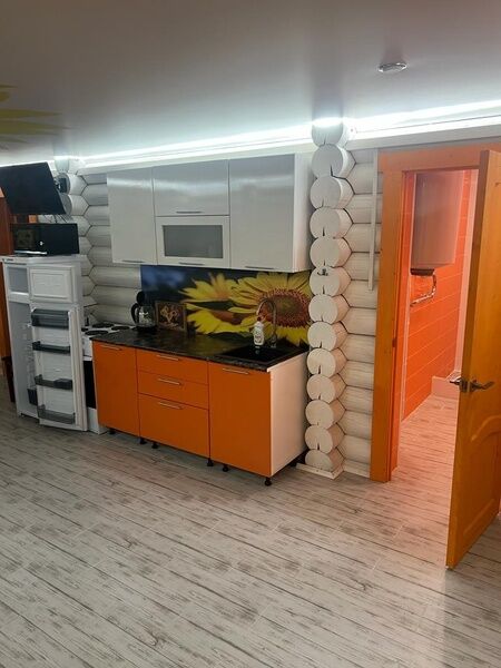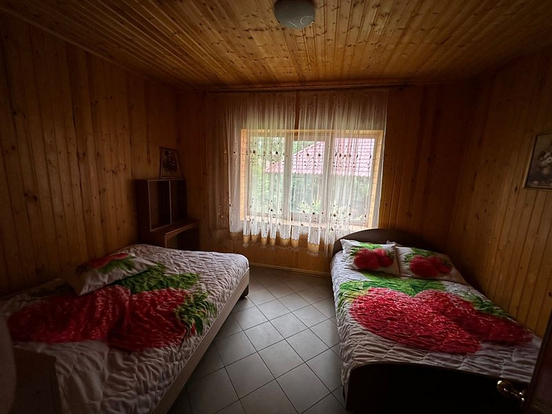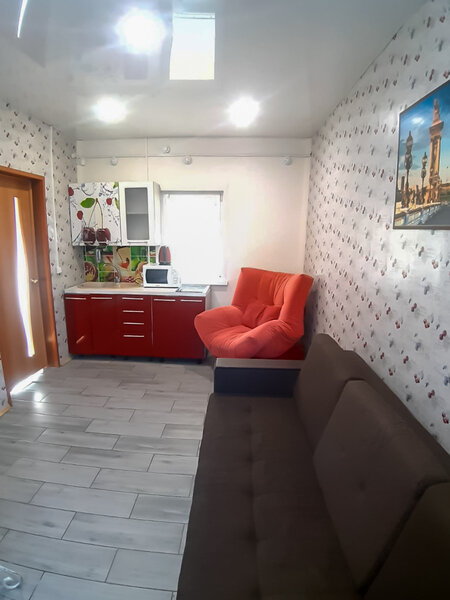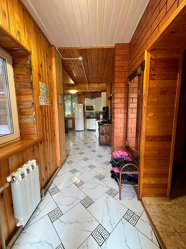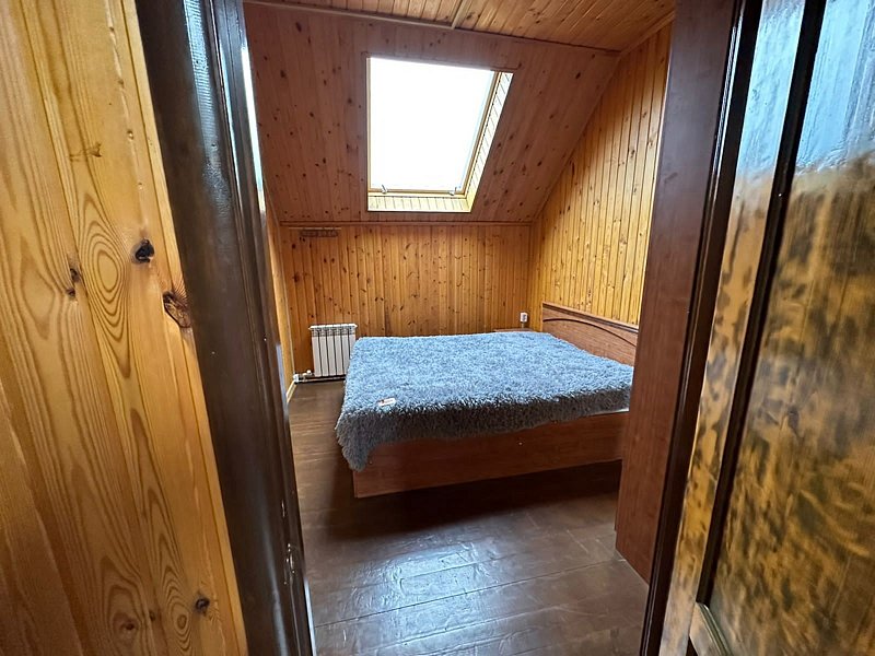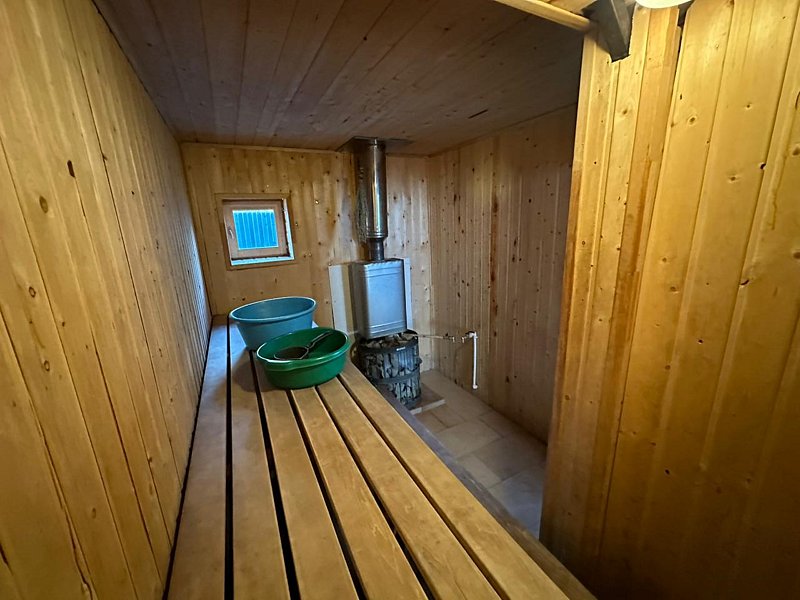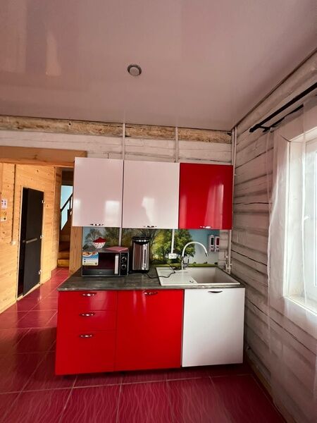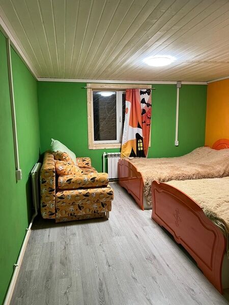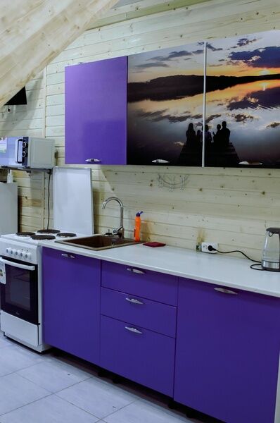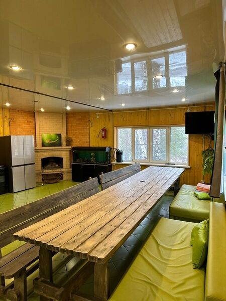 В доме санузел, кухня, комната с двуспальным диванов и вместительная русская баня. Домик рассчитан на 2 спальных места. В нем есть: телевизор, холодильник, чайник, плита, мультиварка. Посуда, сковороды, кастрюли, белье, мангал.
