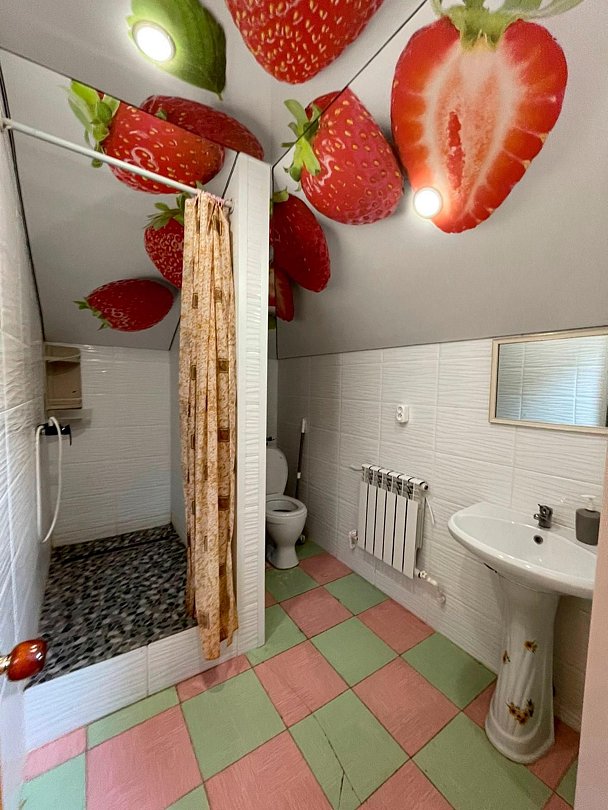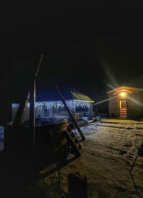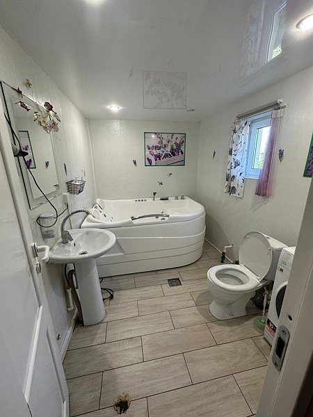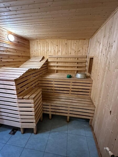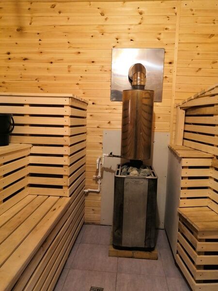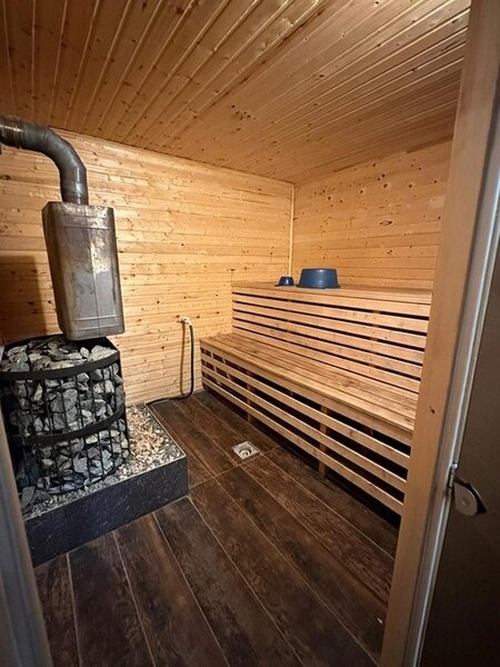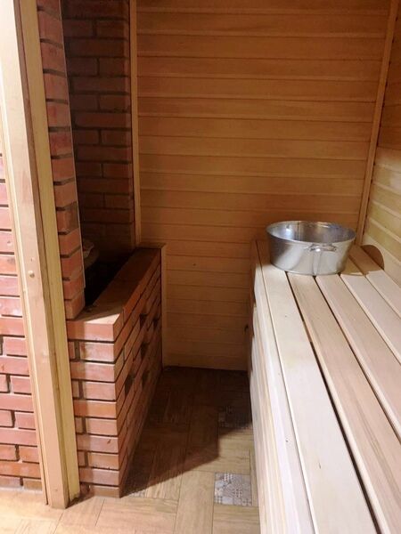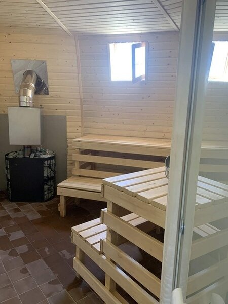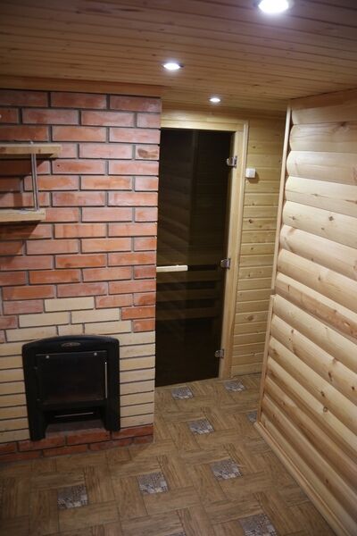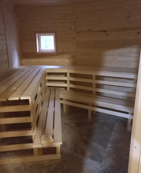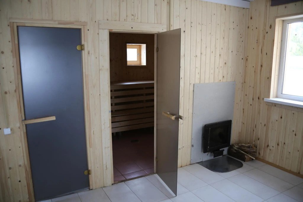 - тёплое здание с баней, сауной с розовой солью, двумя раздевалками с ящичками и двумя санузлами с душем;