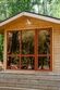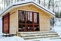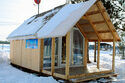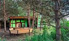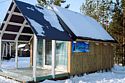 Небольшие 5 одинаковых круглогодичных дачных домиков спрятаны между елочек в лесу Хуторок Озерный: