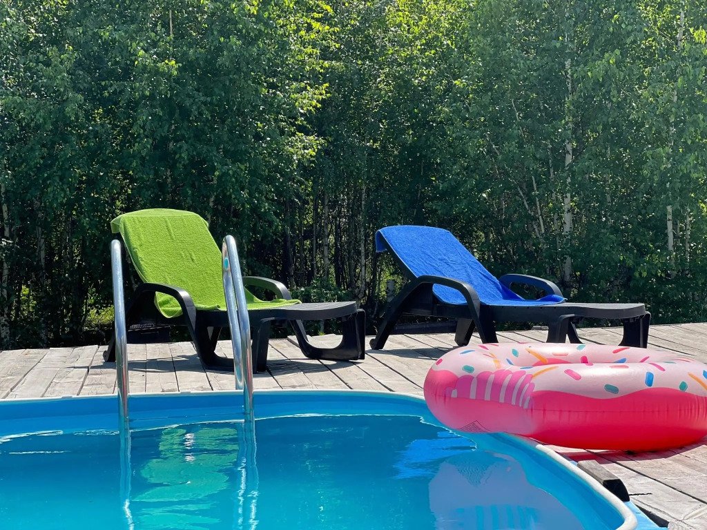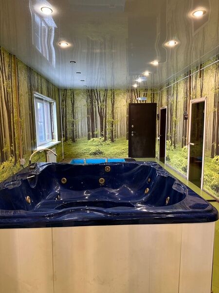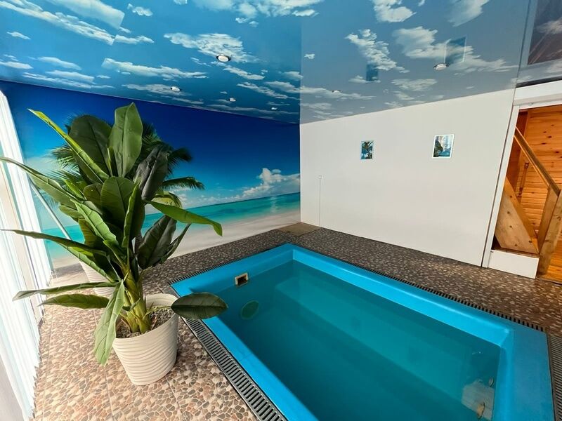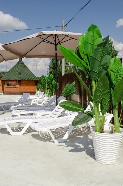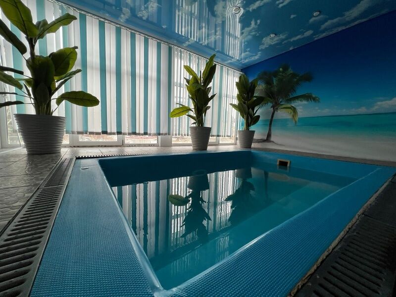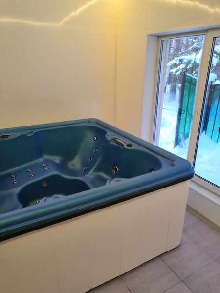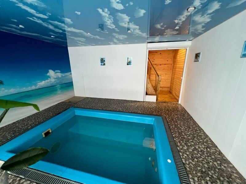 - на улице подогреваемый круглогодичный бассейн 25 метров, детский бассейн и различные чаны с холодной, теплой и горячей (аквабеседка) водой.