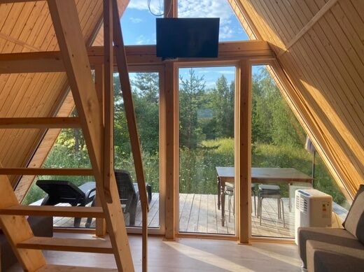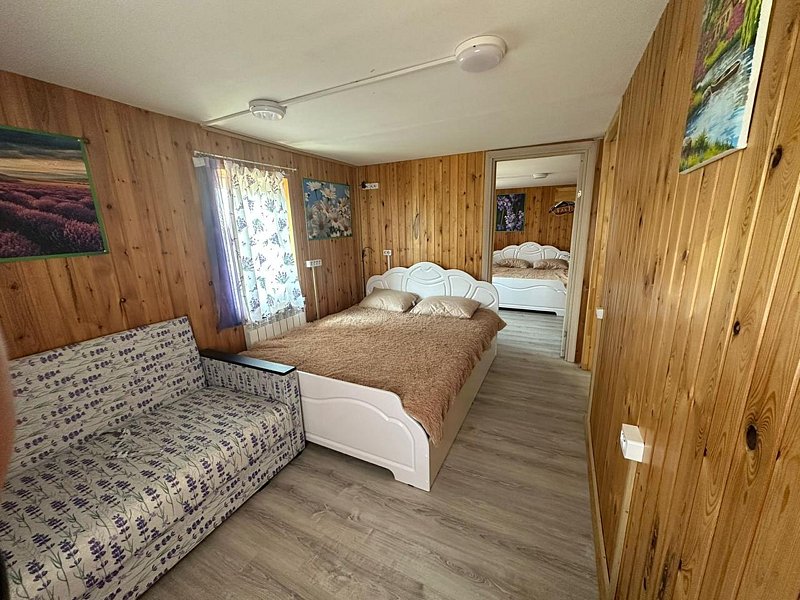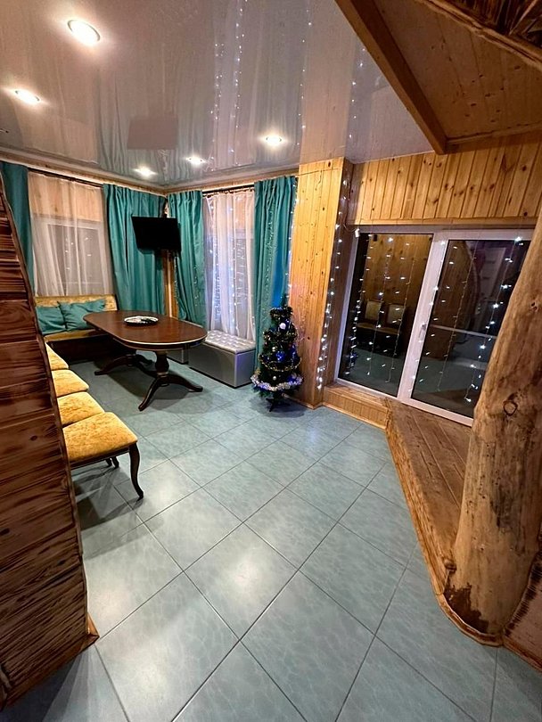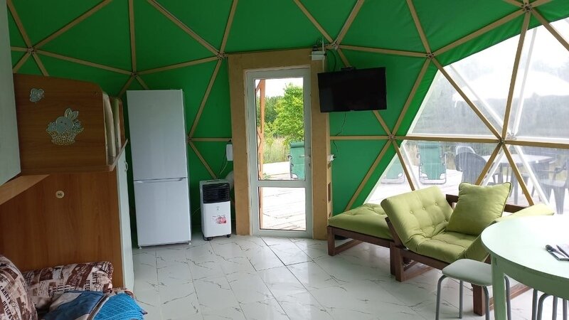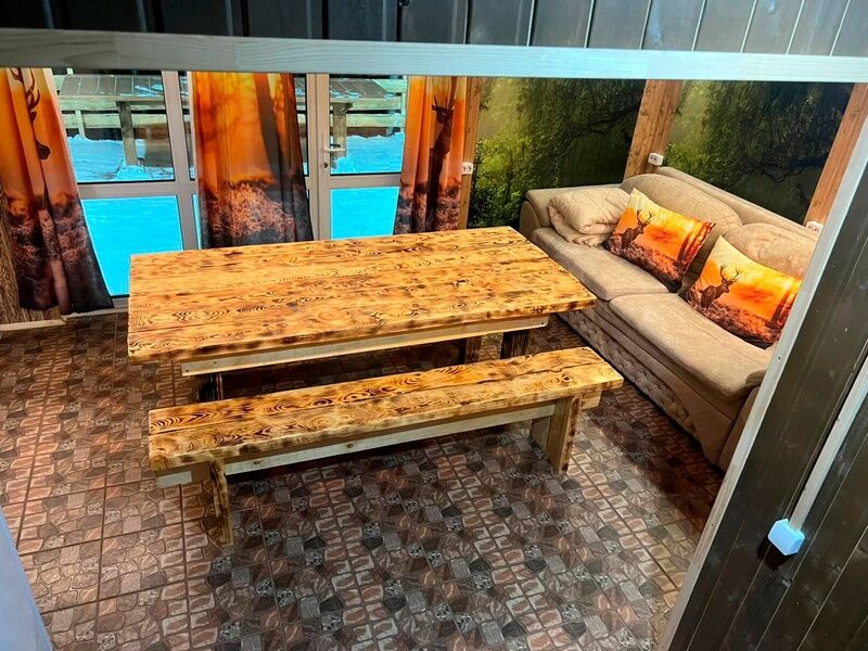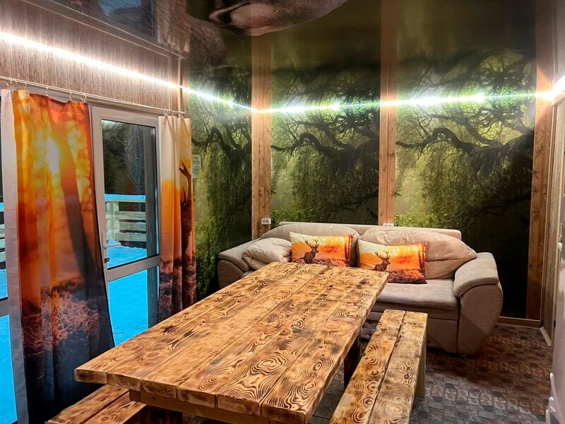 В доме есть 2 двуспальных дивана, санузел. Панорамное окно.