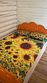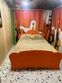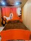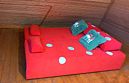 Кровать двуспальная, диванчик, стол с уголком, тумбочка.