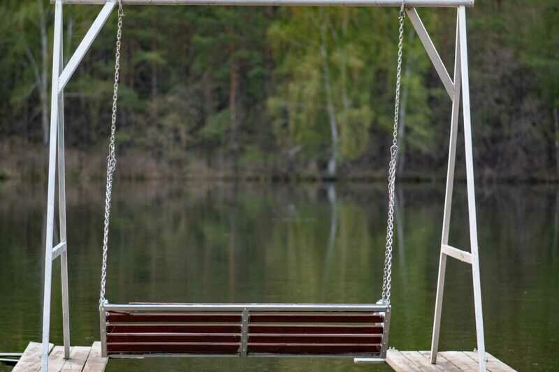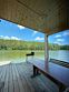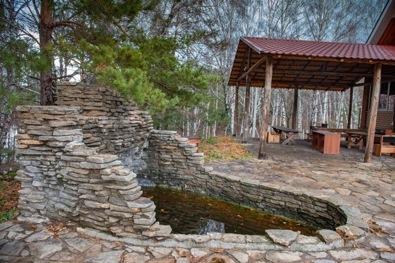 «Молодильный чан» установлен прямо над водой озера 17 ключей, на причале есть стол, лавочки, мангал.