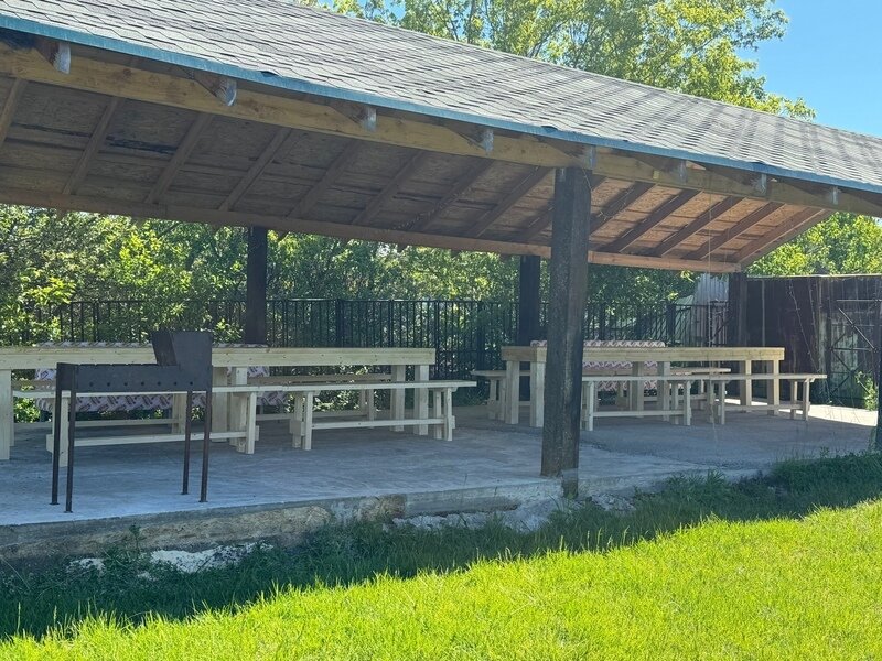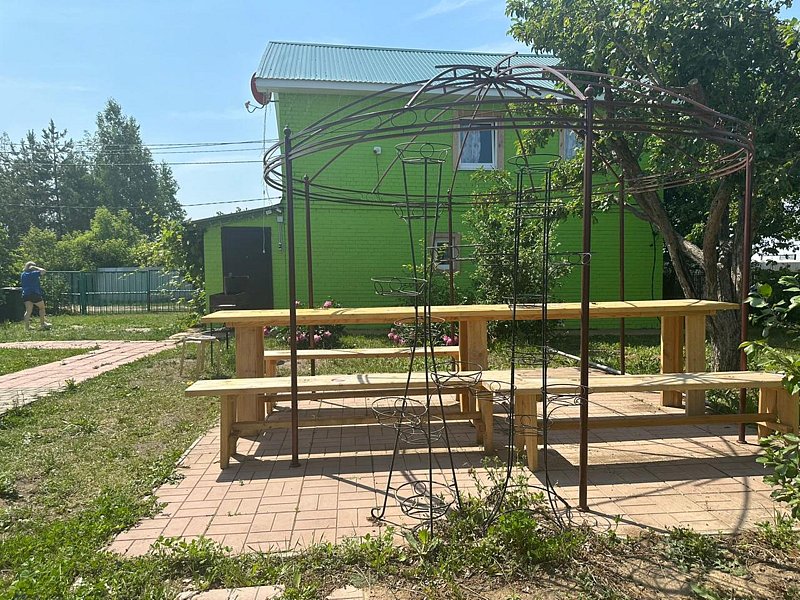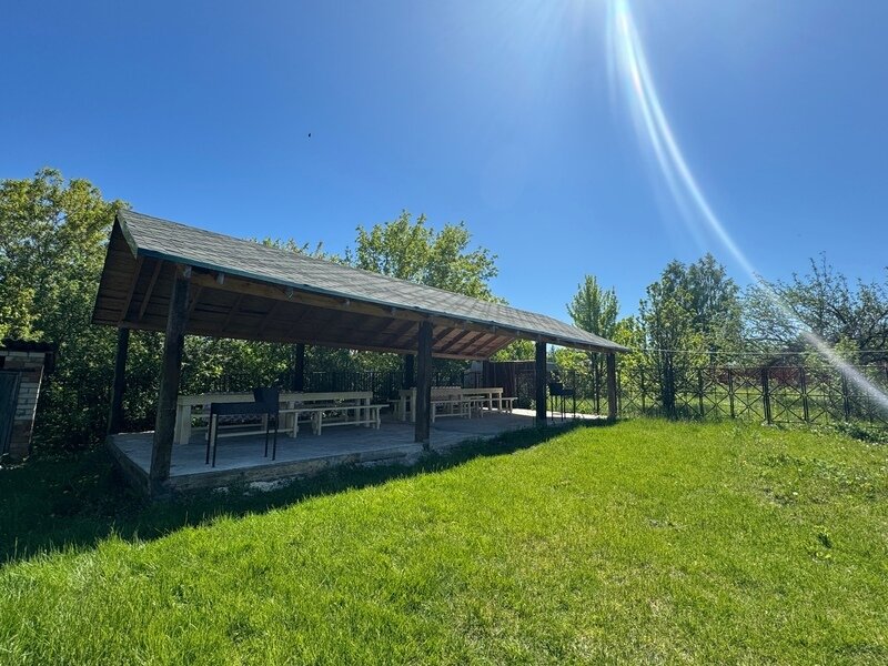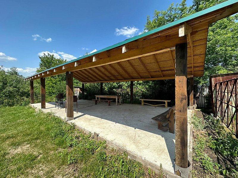 Около дома стоит большая беседка с мангалами, столами и лавочками!