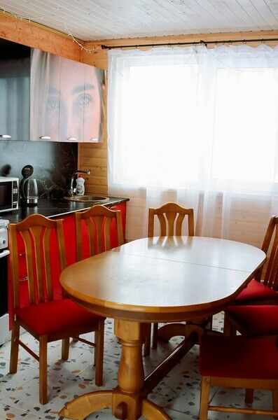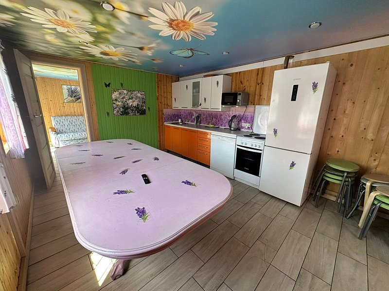 В доме есть вся необходимая техника: телевизор, плитка, микроволновка, чайник, холодильник. Посуда, белье, полотенца в необходимом количестве.