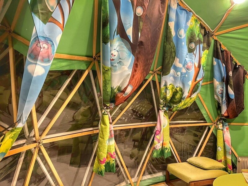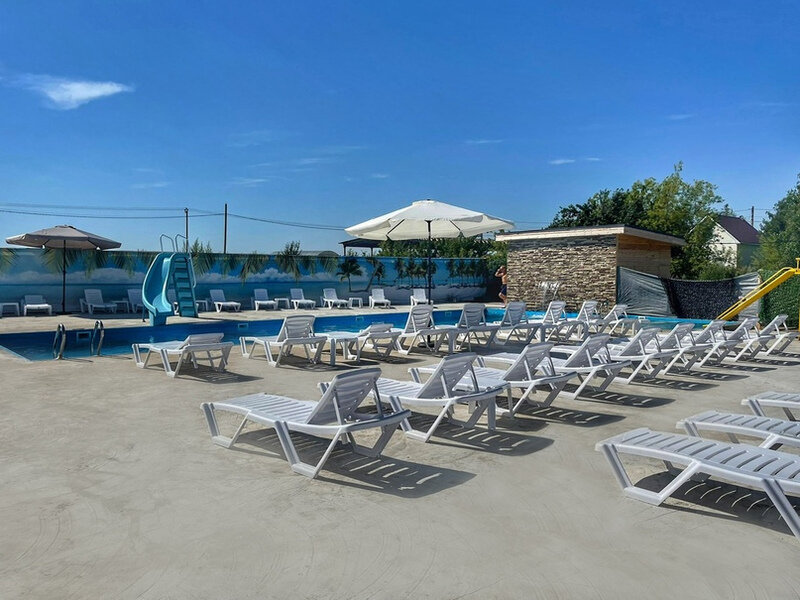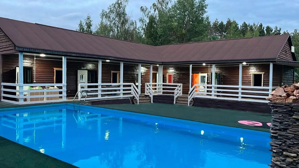 На территории есть детская площадка, кемпинг, глэмпинг, бани фурако, аквабеседка, аквачан, молодильный чан, большие бассейны, беседки для дневного пребывания, фотозона со сказочными персонажами.