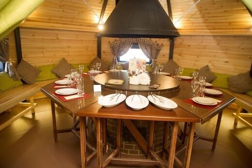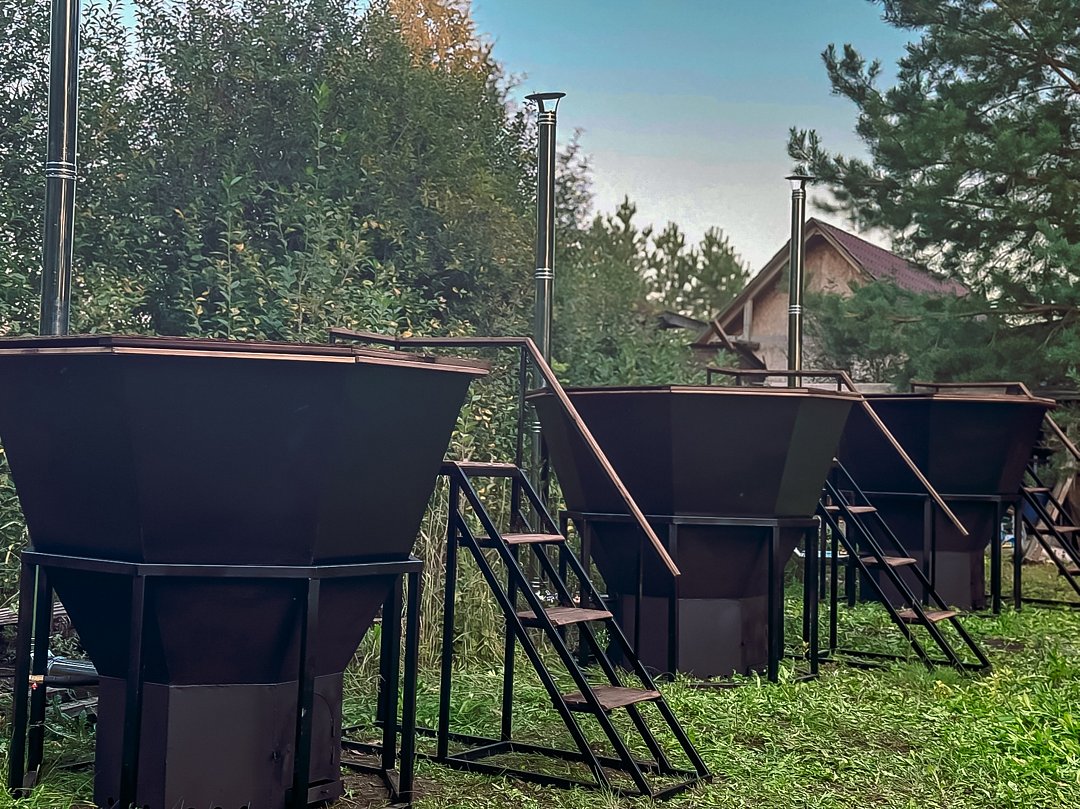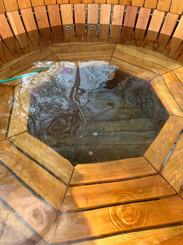 На территории Хуторок Озёрный новый аттракцион — Аквабеседка 2 метра (Банный чан Фурако) из лиственницы очень комфортная. В нее легко могут поместиться 6–10 человек, и при этом никто не будет испытывать неудобств.