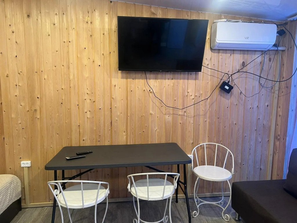 В комнате имеется санузел, все коммуникации, кухня, телевизор, Wi-Fi, микроволновка, холодильник, чайник, плита, диваны, кресла, стол, стулья, на террасе перед входом мангал.