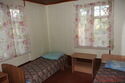 В каждом из этих номеров стоит одна двуспальная и одна полутораспальная кровать, телевизор, шкаф, столик. Холодильник, микроволновая печь и санузел с душевой кабиной - на этаже.