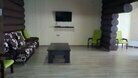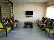 - гостиная совместно с кухней, в которой стоят 2 дивана, телевизор, большой обеденный стол, микроволновка, холодильник, чайник, посуда на 12 персон