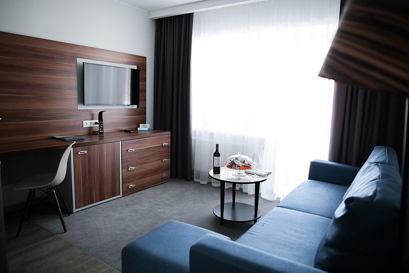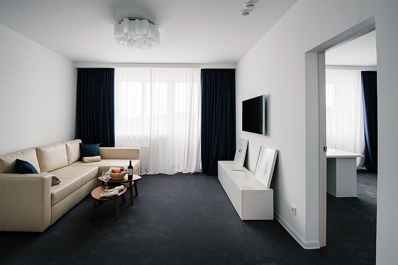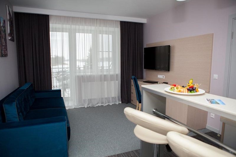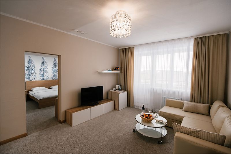 Просторный двухкомнатный номер с рабочей зоной, отдельным выходом на балкон из каждой комнаты. В стоимость проживания включено: • Завтрак в формате «Шведский стол»; • Высокоскоростной WI-FI во всех номерах и общественных зонах • Охраняемая территория гостиничного комплекса, бесплатная парковкаУслуги и удобства