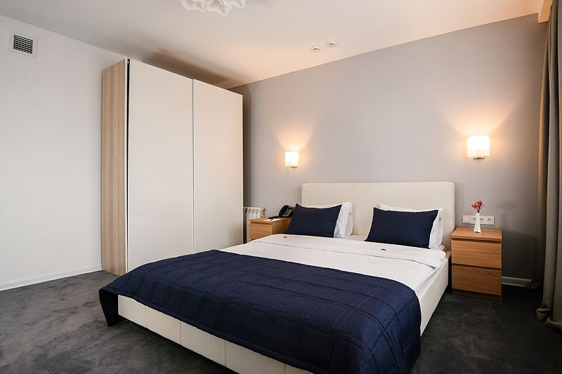 Просторные современные двухкомнатные Апартаменты предлагают гостям уединенную спальню и комфортабельную гостиную. Все номера оборудованы барной стойкой и кухней со всеми необходимыми принадлежностями для приготовления еды. Вид на сосновый бор поможет восстановить ваши силы. Номер подходит для гостей, приехавших на длительный срок, а также для отдыха с семьей в выходные дни. В стоимость проживания включено: • Завтрак в формате «Шведский стол»; • Высокоскоростной WI-FI во всех номерах и общественных зонах • Охраняемая территория гостиничного комплекса, бесплатная парковкаУслуги и удобства