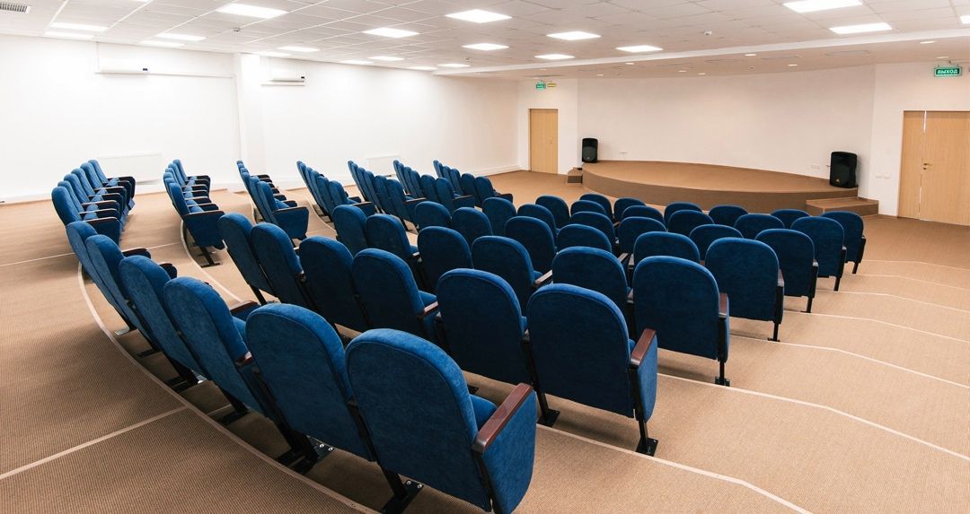 Идеально подходит для организации конференций, презентаций, семинаров, брифингов, обучающих тренингов, предполагающих участие большого количества гостей, которых необходимо разместить в одном помещении. Вместимость: до 100 человек.