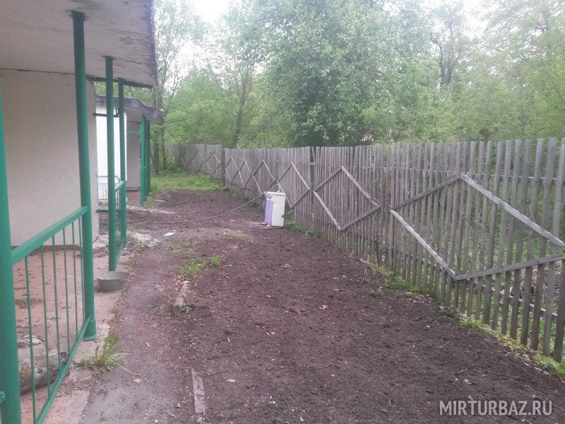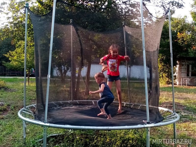 На территории расположена детская площадка и батут.