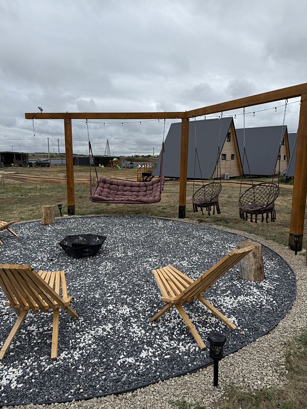 На ухоженной территории глэмпинга для размещения гостей подготовлены уютные 4-х местные домики A-frame с видом на лес и реку, оборудованные всем необходимым для комфортного проживания. В каждом домике имеется кухня, холодильник, СВЧ-печь, чайник, электрическая плита, вся необходимая посуда и постельные принадлежности. Для создания интерьеров были использованы только экологичные материалы. Возле каждого домика установлен мангал.