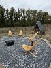 - терраса с уютной гирляндой, садовой мебелью и мангалом.