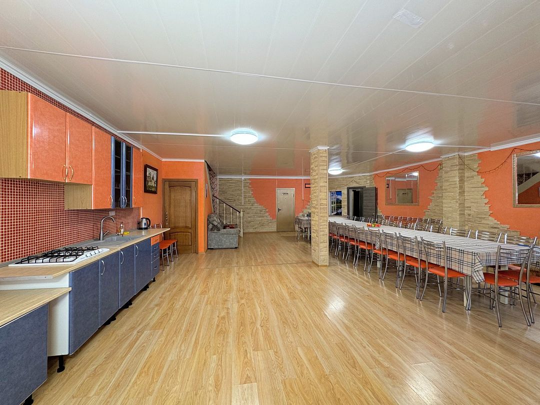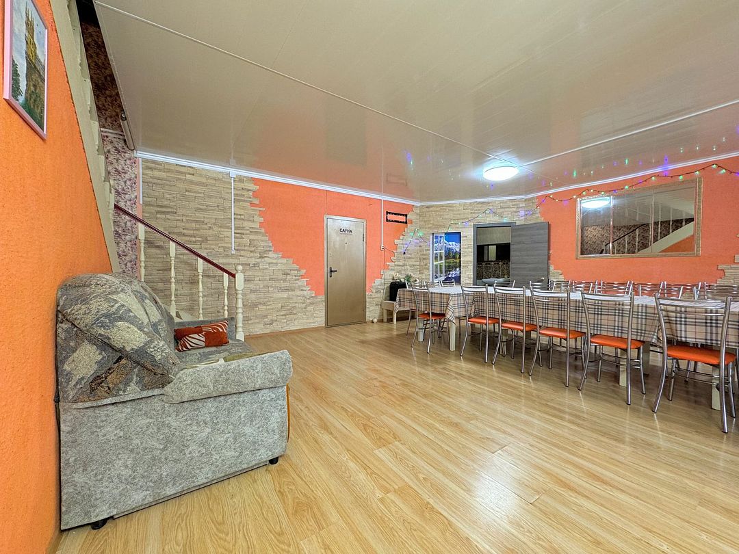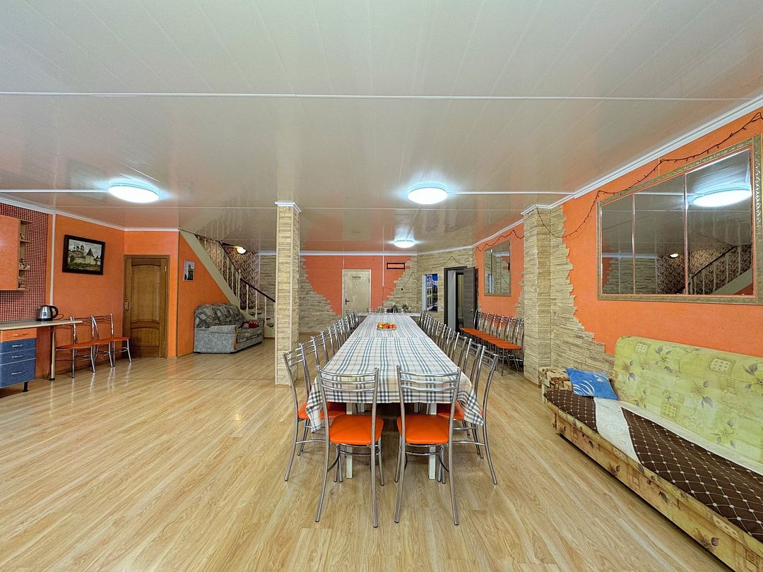 В коттедже есть банкетный зал площадью 90 м² и вместимостью до 60 гостей.