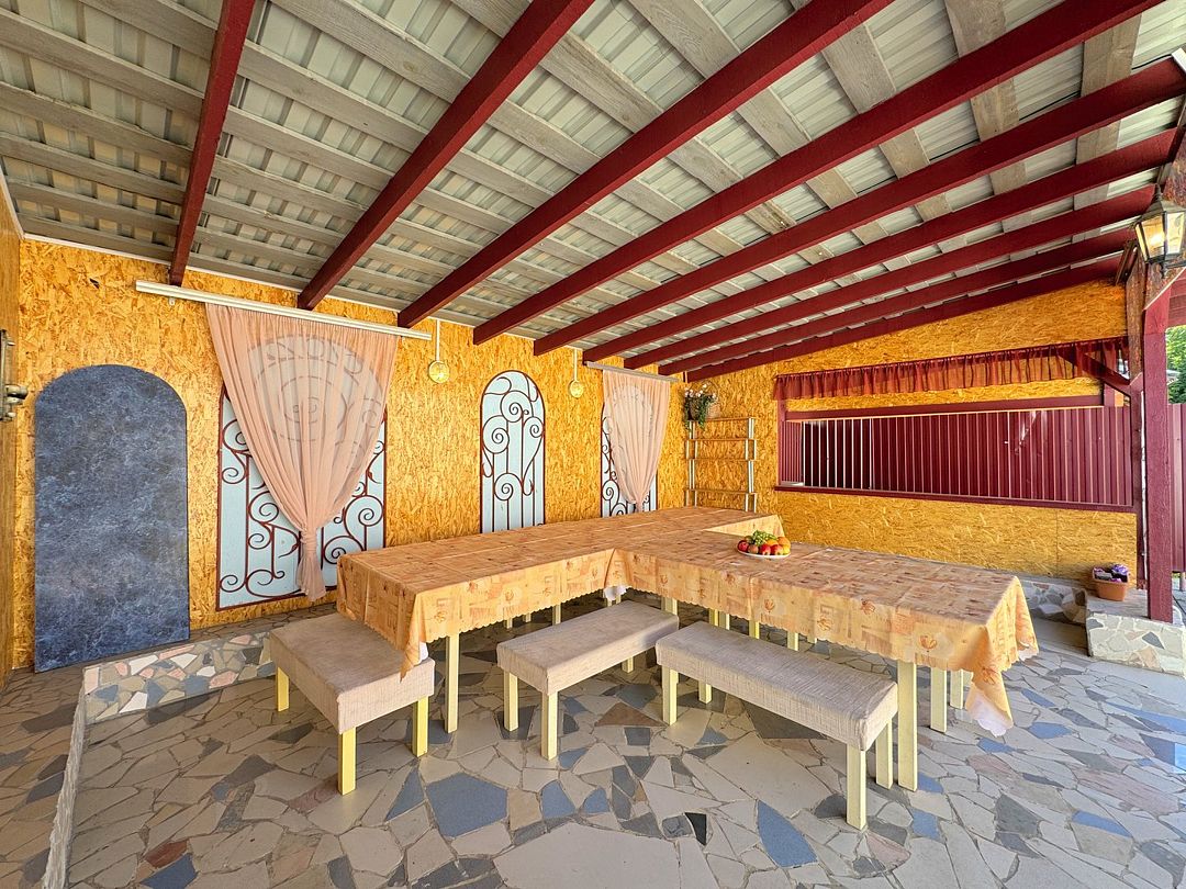 - На территории: Беседка с освещением на 30-40 человек, мангальная площадка, парковка на 20 автомобилей.