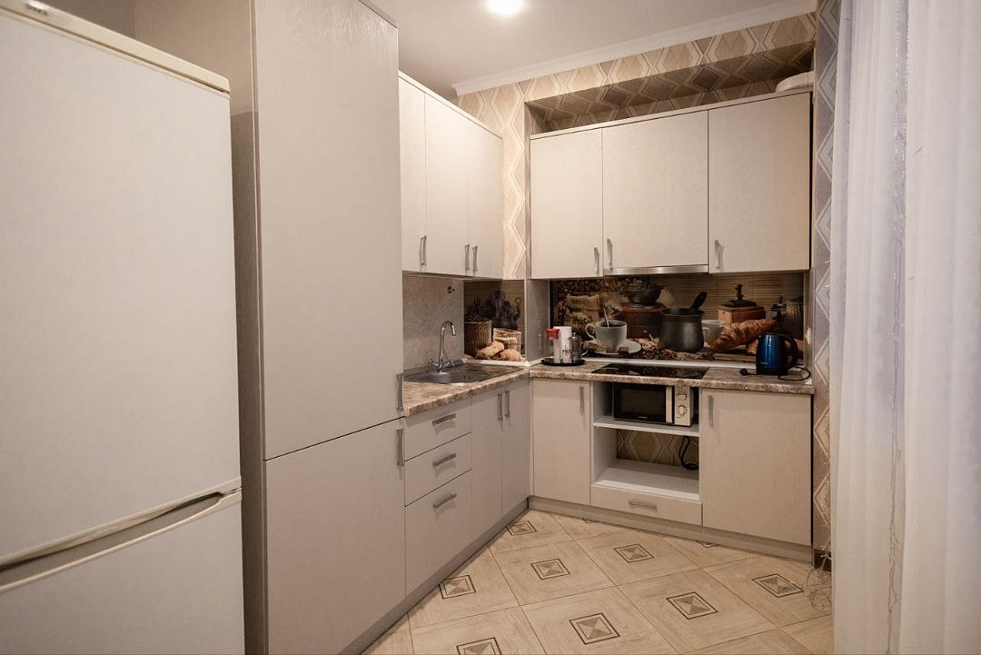 Уютный номер в спокойных, пастельных тонах, создает атмосферу домашнего комфорта в лучших традициях. Здесь можно отдохнуть семьей или компанией из 2-4 человек или провести медовый месяц вдвоем. Кухонная зона организована таким образом, что здесь приятно готовить вместе.