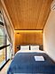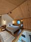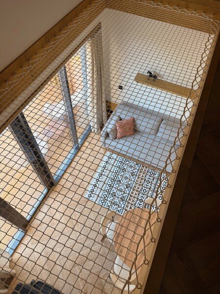 Отдельная спальная комната на втором этаже с просторной лофт-сеткой в уровне второго света, а также проектором для просмотра фильмов.