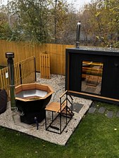 Бани выполнены из экологически чистой, высококачественной липы, оснащены удобным душем для контрастных процедур, комфортным местом для полного расслабления и душевных бесед с друзьями и близкими!