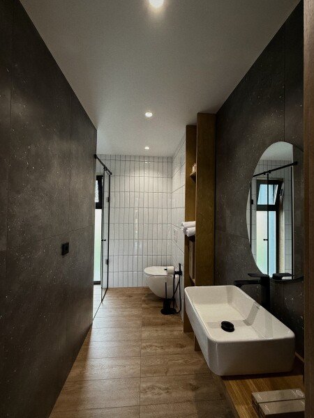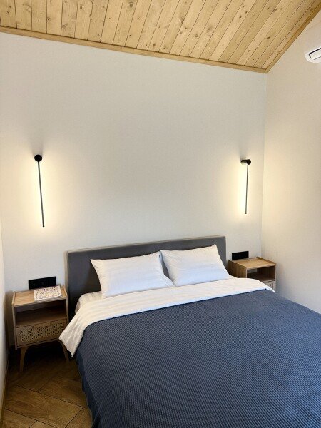Две ванных комнаты, кухня-гостиная, персональная терраса с гриль-зоной, отдельная баня на дровах с чаном.