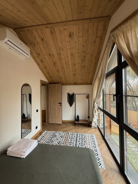 Две отдельные спальни на втором этаже. Две ванные комнаты на первом и втором этаже. Просторная кухня-гостиная, персональная терраса с гриль-зоной, индивидуальная баня на дровах с чаном.