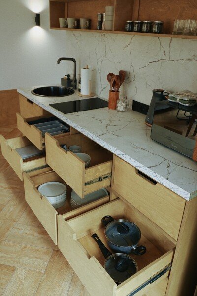 Две ванных комнаты, кухня-гостиная, персональная терраса с гриль-зоной, уличная дровяная Фурако.