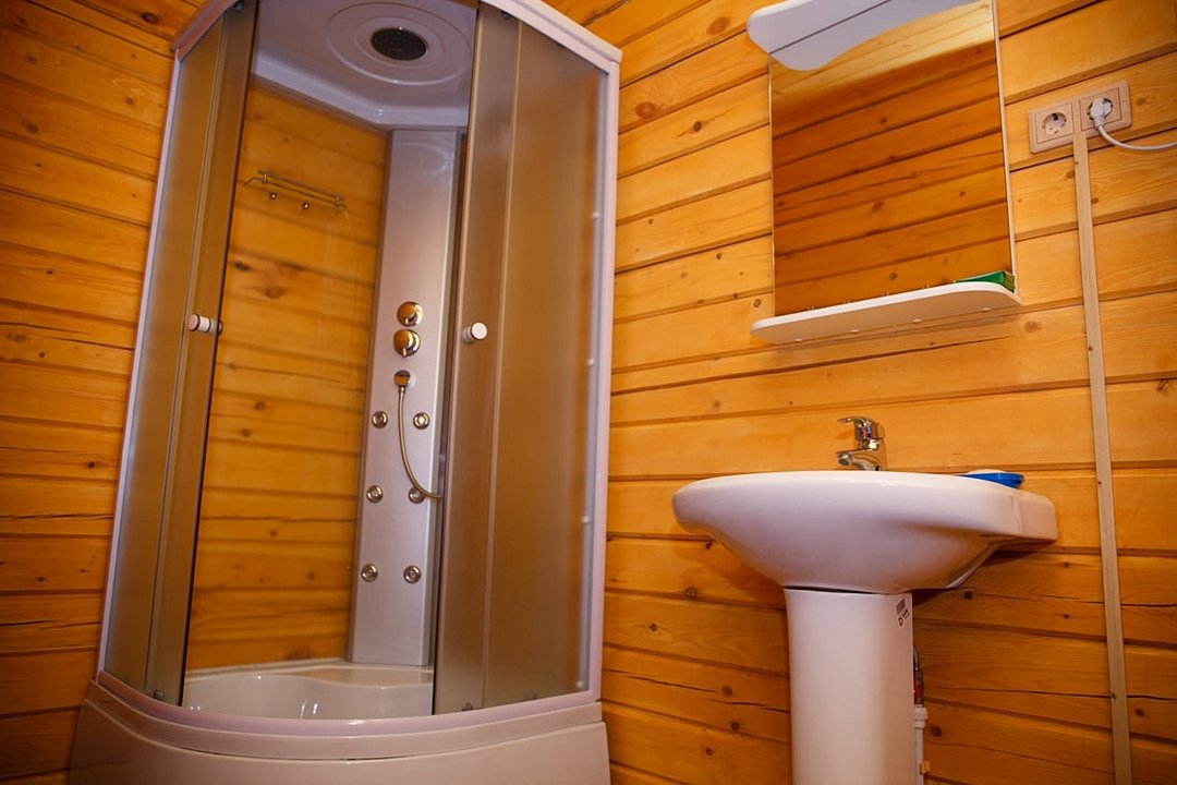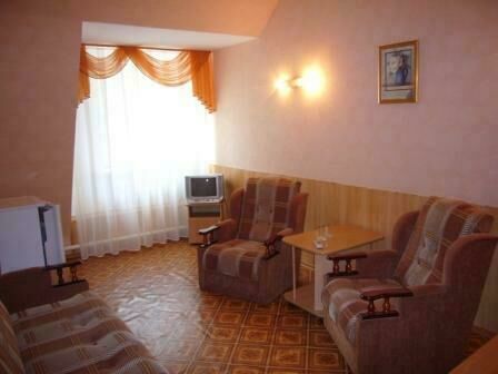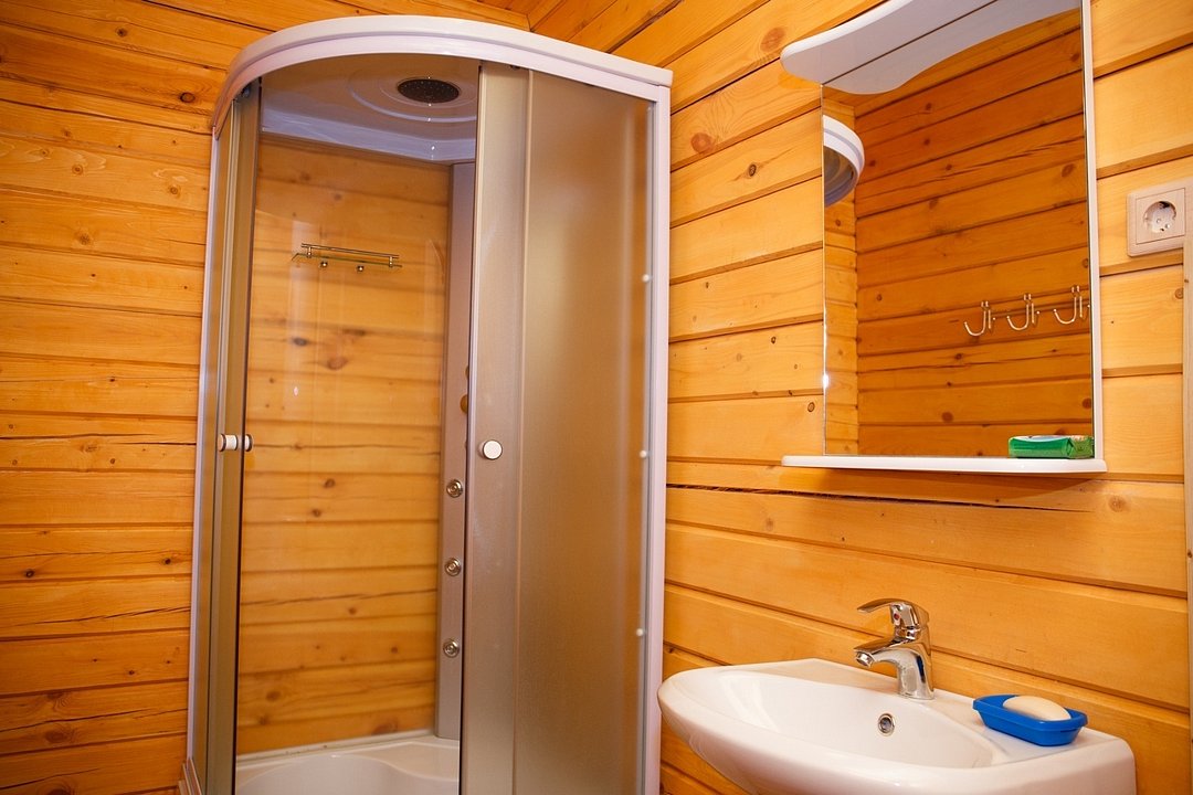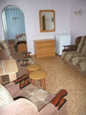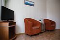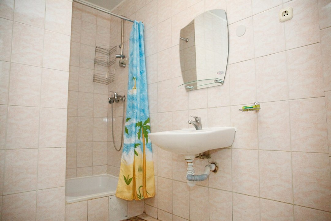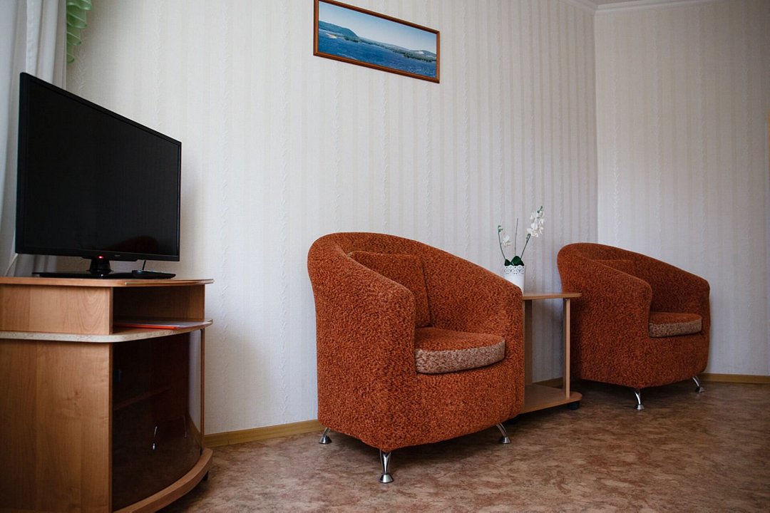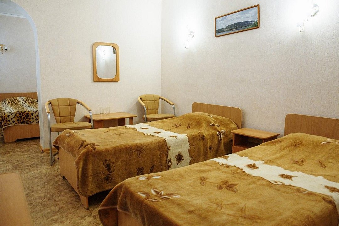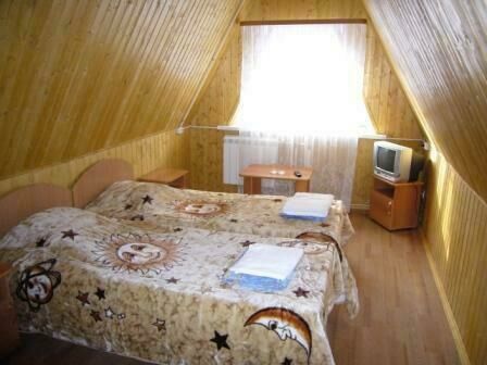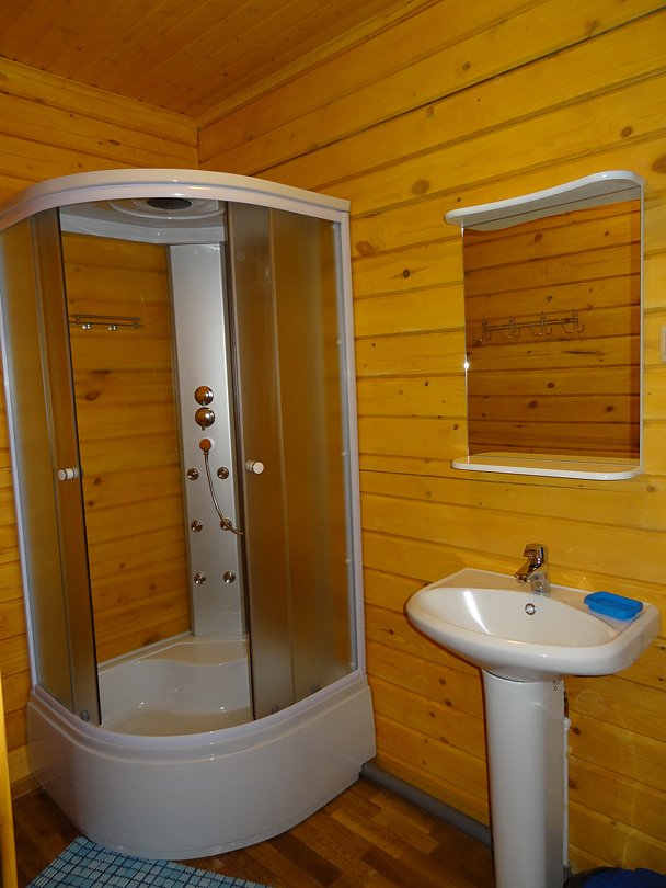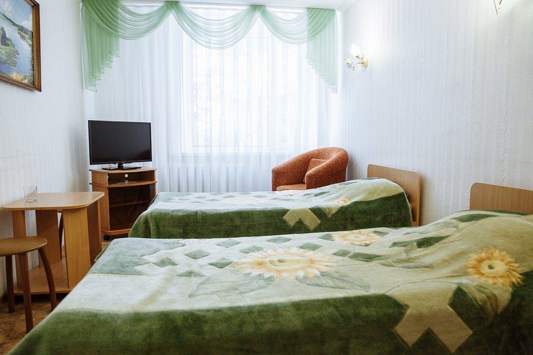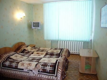 В номере: полутороспальные кровати (двуспальный диван). Телевизор, санузел, душевая кабина, раковина.