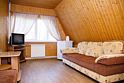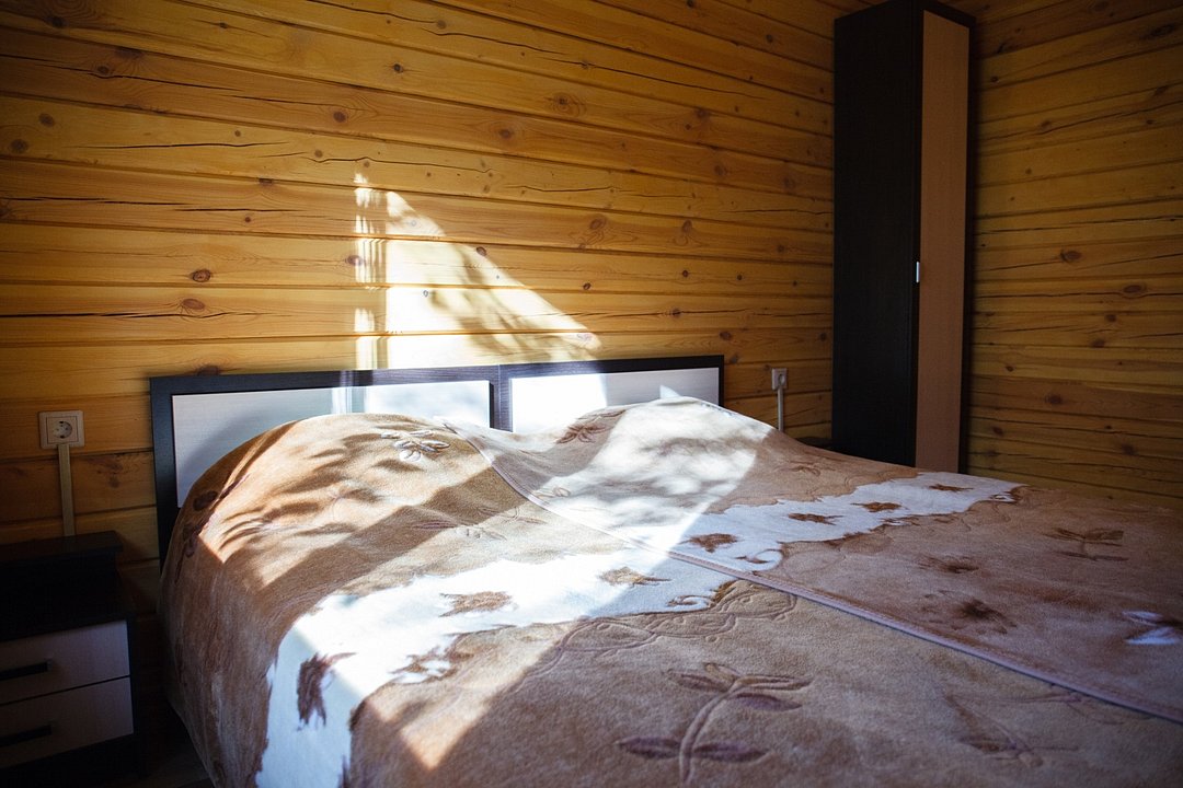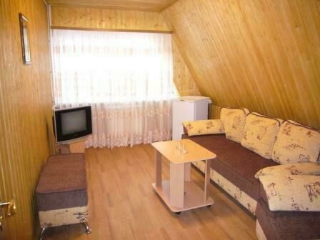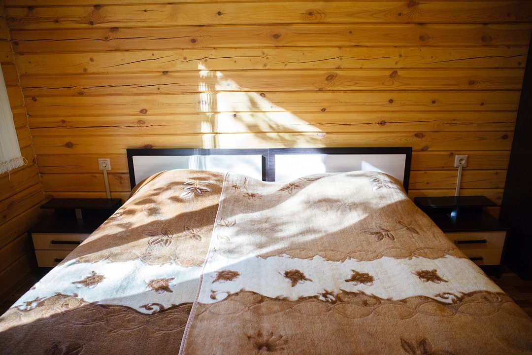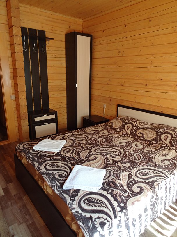Состоит из двух номеров — на первом этаже двухкомнатный номер, вместимостью до 4 человек (2 основных места + 2 дополнительных места). На втором этаже однокомнатный номер, вместимостью на 2 человека. Каждый номер оснащен: полутороспальными кроватями (двуспальный диван), прикроватными тумбочками, комодом для вещей, холодильником, телевизором, санузлом с душевой кабиной, раковиной и унитазом.