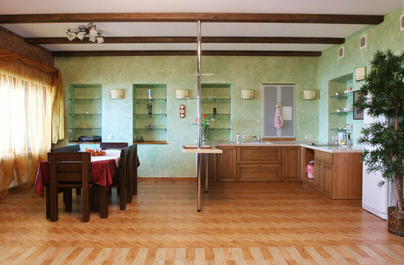 Большой комфортный коттедж для отдыха с продуманной инфраструктурой: кухней, тремя спальнями, сауной с бассейном.