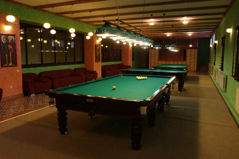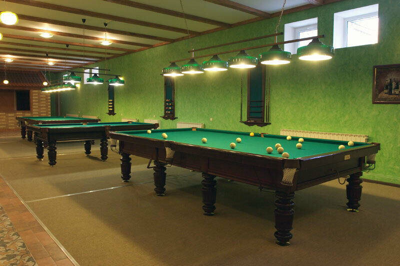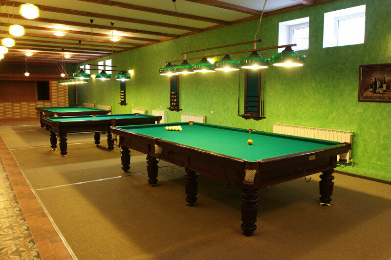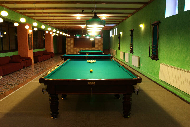 Новый просторный бильярд располагается в здании гостиницы и состоит из двух столов русского бильярда и одного стола “американки”.