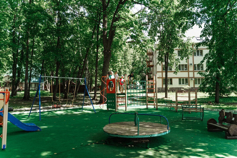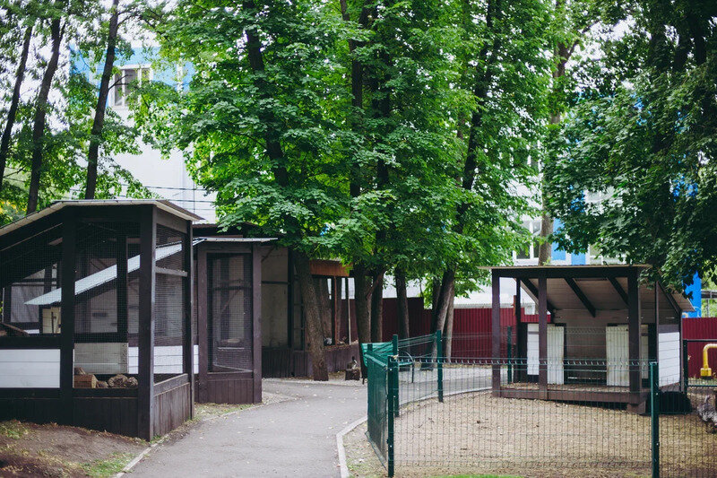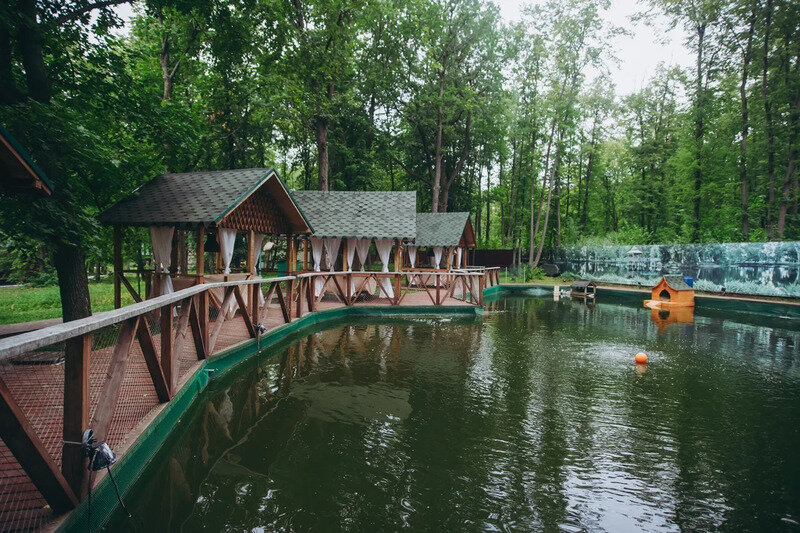Отдых с друзьямиДостоинстваБаза в черте города, для деток есть площадка и небольшой бассейн, помимо животных в клетках увидели разных птиц и ежа. Не слышно городской суеты. Бассейн с подогревом.