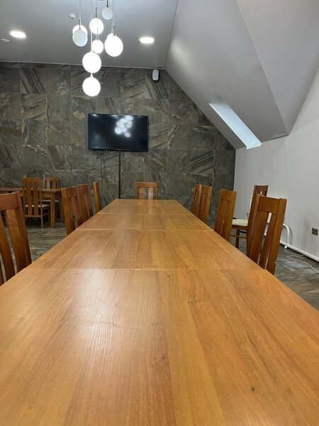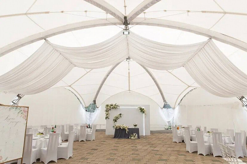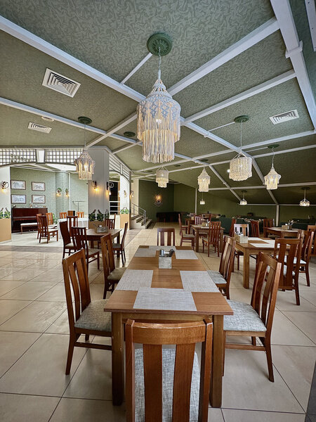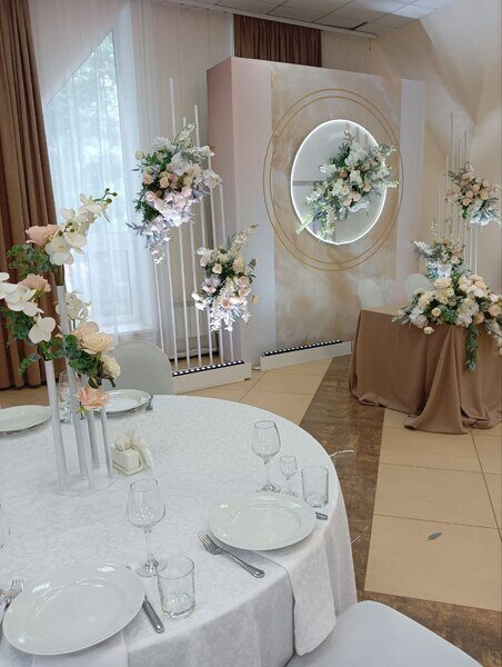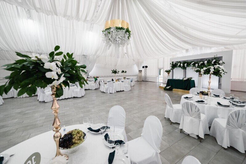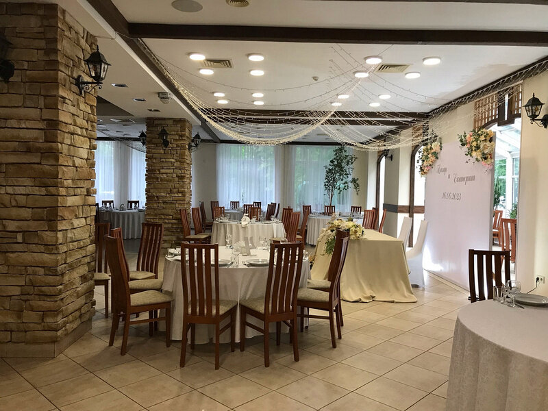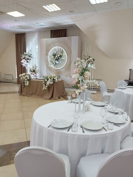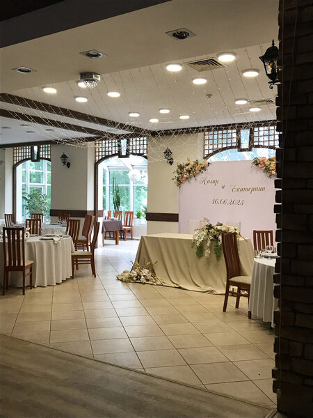 Уютный зал является универсальным и будет отличным выбором для проведения свадьбы. Высокие потолки, большие окна создают атмосферу торжественности.
