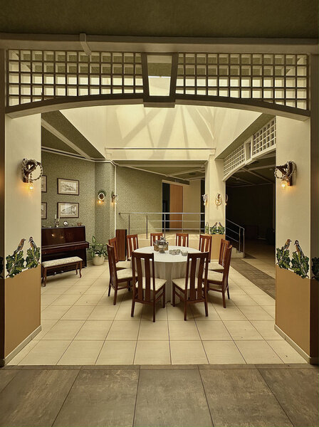 Прекрасный стилизованный зал под самарскую усадьбу, панорамный потолок создает особую атмосферу. Зал прекрасно подходит для небольших камерных мероприятий.