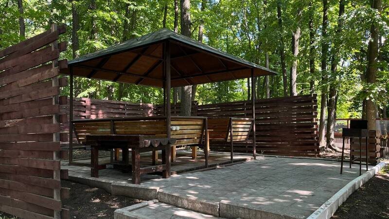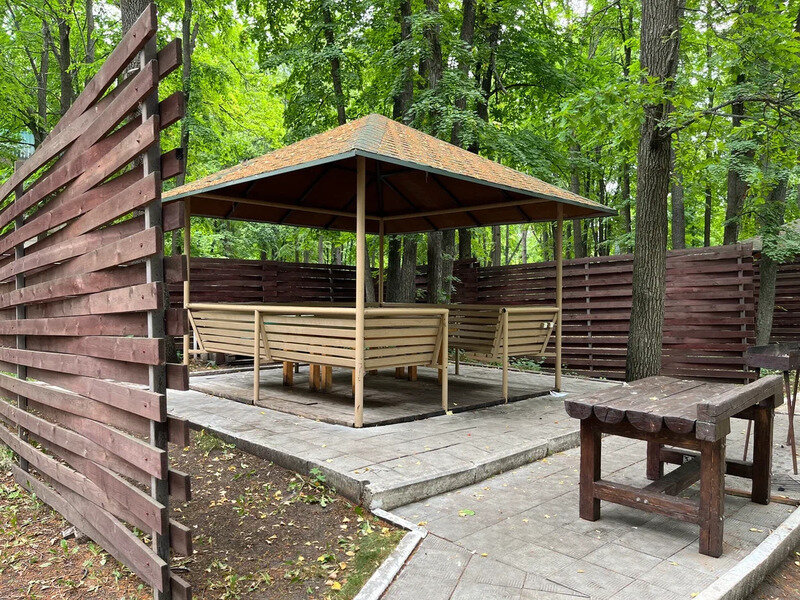 Подходят для празднования мероприятий и посиделок в хорошей компании. До 12 человек. Все беседки-барбекю ограждены забором.